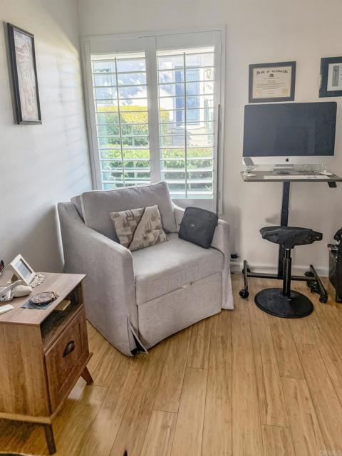 Welcome to this beautifully upgraded single-story townhome in the highly desirable Playmor community — offering rare privacy with no neighbors above and only four residences per building. Designed with warmth and functionality in mind, the open layout features bamboo flooring throughout, neutral tones, recessed lighting, and a seamless flow to a spacious private patio finished with durable, sun- and water-resistant TechWood decking — perfect for indoor-outdoor living. The remodeled kitchen showcases granite countertops, a Kraus workstation sink, Hauslane stainless hood, and premium Thermador and Gaggenau appliances. Both bathrooms have been tastefully updated with modern vanities and elegant cascade faucets. Additional improvements include dual-pane energy-efficient windows, plantation shutters, a tankless water heater, and a cozy wood-burning fireplace. The spacious primary suite offers a generous en-suite bath and walk-in closet. The secondary bedroom is currently configured as a private home office, ideal for today’s flexible work-from-home lifestyle, and can easily function as a full bedroom. A dedicated laundry/storage room with stackable washer/dryer adds convenience. Two side-by-side parking spaces (one covered) are included. Enjoy community amenities such as a pool, and pet-friendly greenbelts — all within walking distance to UTC Mall, Trader Joe’s, Whole Foods, Doyle Park, and the UCSD Blue Line Trolley. Minutes to La Jolla Shores and major freeways (5, 805, 52, 56). An exceptional opportunity to own in one of University City’s most convenient and established neighborhoods.