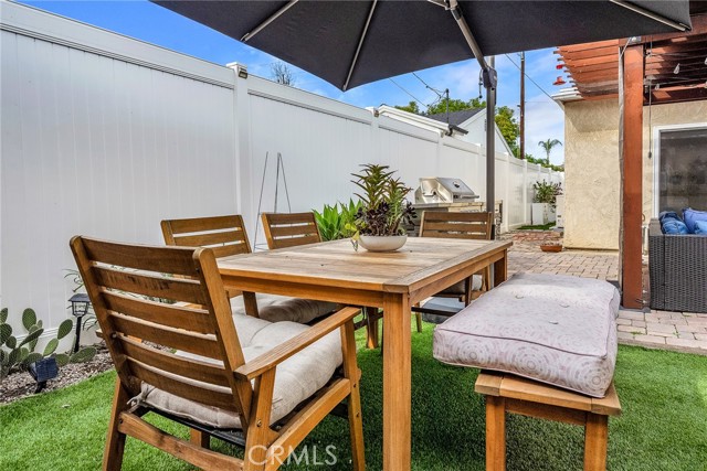 The backyard is designed for the modern lifestyle. It includes a dedicated exterior office space with its own bathroom, located next to the garage area. It is the perfect setup for a quiet professional workspace, a creative studio, or a guest retreat.