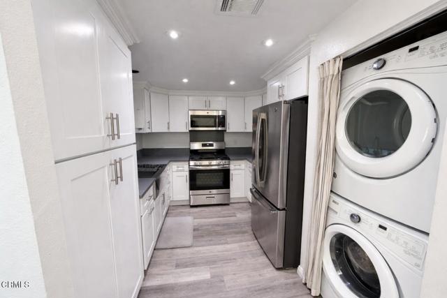 Welcome to 16510 Dundee Court #89 nestled at The Glen at Hillsborough community in La Mirada. This beautifully updated 2-bedroom, 2-bath single-family home offers 1,051 square feet of bright, open living space.Step inside to vaulted ceilings and an airy open-concept living and dining area filled with natural light. The spacious living room features dramatic architectural lines, expansive windows, and a cozy fireplace that creates a warm and inviting focal point.The remodeled kitchen showcases crisp white cabinetry, sleek countertops, stainless steel appliances, recessed lighting, and an efficient layout that blends style and functionality. An in-unit stacked washer and dryer adds everyday convenience.The primary bedroom and secondary bedroom are thoughtfully positioned for comfort and privacy, while the bathrooms have been tastefully updated with modern finishes for a clean, move-in-ready feel.Upstairs, you'll find a versatile loft space overlooking the main living area -- ideal for a home office, media room, workout space, or guest retreat. The loft adds flexibility and enhances the home's open, airy design.Enjoy outdoor living on the private balcony, perfect for morning coffee or relaxing evenings. The home also includes garage parking directly below.Located near parks, shopping, dining, and major commuter routes, this home offers the perfect blend of comfort, style, and convenience.Move-in ready and thoughtfully updated -- a fantastic opportunity in La Mirada.