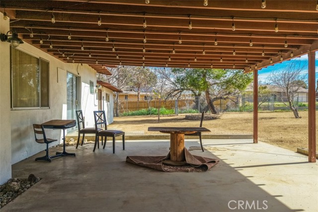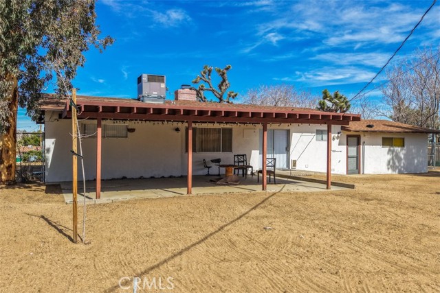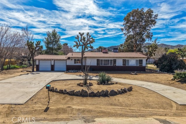 Welcome to this affordable, move-in-ready home in the highly desirable Storey Park neighborhood of Yucca Valley—perfect for a first-time homebuyer or anyone looking for a comfortable desert property with space to grow. This 3-bedroom, 1.5-bath home offers 1,307 square feet of living space situated on a generous 17,985 square foot lot, giving you room for RVs, outdoor living, or future possibilities. Step inside to a warm and inviting living room featuring a wood-burning fireplace with a custom metal mantle, custom wood accents, and a mounted TV space—creating the ideal setting for cozy evenings at home. The main bathroom maintains its classic vintage appeal with original detailing, including the mirror and cabinetry, complemented by a walk-in shower. The kitchen is both functional and stylish, featuring granite countertops, a tile backsplash, and matching stainless steel appliances, along with ample cabinet space for storage and organization. Whether you love cooking or hosting, this space delivers practicality and personality. Outside, you’ll appreciate the large covered patio that offers shade and comfort for entertaining, relaxing, or enjoying desert sunsets. The fully fenced backyard provides privacy, security, and space for pets, gatherings, or star-filled desert nights. In addition, there is a separate enclosed chain-link area, ideal for a dedicated dog run or secure boat storage. Additional highlights include a convenient indoor laundry room, attached 2-car garage, central heating and air conditioning, and RV parking along the side of the home—a rare and valuable feature in this price range. Located just minutes from town, shopping, restaurants, and cafés, this home is also only 15 minutes from Joshua Tree National Park and about 30 minutes to Palm Springs. With nearby hiking trails, community events, and the charm of the Hi-Desert lifestyle, this property offers both convenience and adventure. If you’ve been searching for a starter home in Yucca Valley, a desert getaway, or a smart long-term investment in a growing area, this one checks the boxes. Come see it for yourself—your desert home begins here.