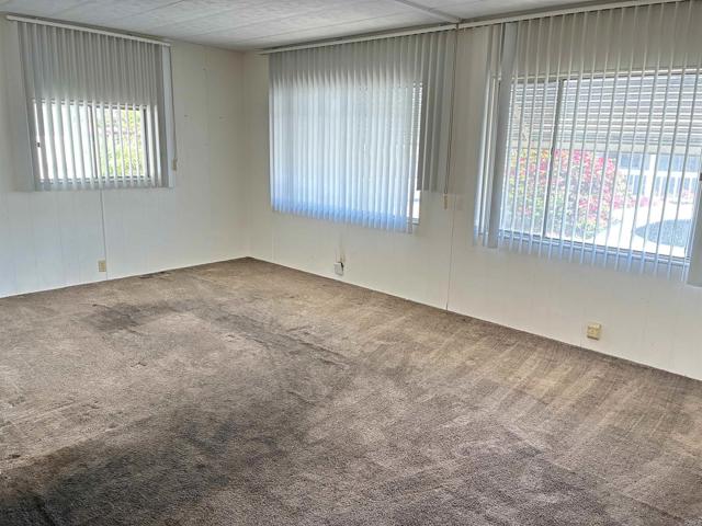 Located in a 55+ community that is walking distance to Stater Brothers grocery store, Walgreens (Rx), Walmart (Rx), Target (Rx), dining, animal veterinarian, and more! Also, convenient freeway access to highway 78! Home needs some TLC and has been priced as a fixer upper. 2 walk in closets. Large backyard, two storage sheds, covered porch and covered carport for up to two cars. Located in a 55+ community in which the second resident can be as young as age 30. Two pets are permitted with prior approval by the management (breed restrictions apply). This park offers many amenities including a clubhouse, pool, spa, billiards, library, guest parking and free food handouts every Wednesday! Monthly space rent is $1,450.