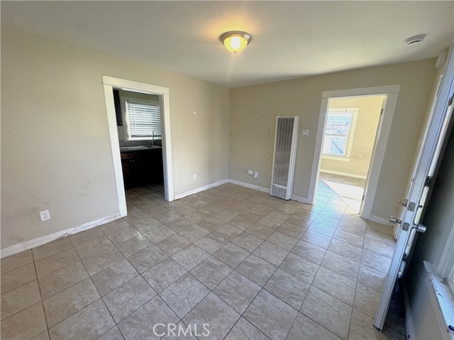 Vacant and ready for occupancy, this 1-bedroom, 1-bathroom unit includes a covered front porch, living room, and kitchen. The kitchen is equipped with tile flooring, newer-style cabinetry, updated countertops, and appliances. A storage shed on the patio area provides additional storage space. The driveway also offers room for vehicle parking.
