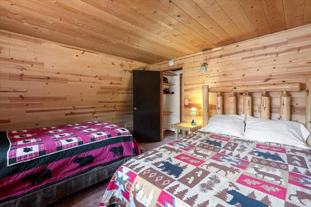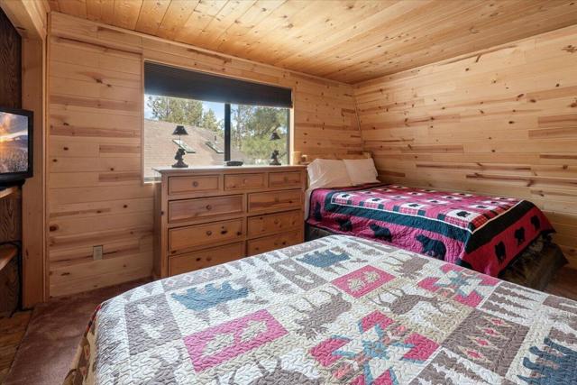 Escape to the mountains in this charming Big Bear cabin, being sold fully furnished and ready to enjoy! This cozy retreat has everything you need for the ideal mountain getaway or vacation rental. Step inside to a warm and inviting living room featuring a Franklin wood-burning fireplace, perfect for those snowy Big Bear evenings. The kitchen has been beautifully upgraded with granite countertops, stainless steel appliances, and knotty pine cabinets, giving it that perfect blend of modern comfort and classic mountain charm. The bathroom is tastefully updated with modern tile, new fixtures, and a relaxing jetted bathtub--the perfect place to unwind after a day on the slopes or hiking the trails. With two oversized bedrooms that can accommodate multiple beds, there's plenty of room for guests, making this an ideal vacation home or income-producing rental. Step outside and enjoy summer BBQs on the spacious deck, accessible from both the kitchen and living room. The property also offers plenty of parking for two or more cars plus additional storage space beneath the home. Tucked away on a short private road and just steps from the National Forest, this cabin offers the peace, privacy, andmountain lifestyle you've been looking for in Big Bear.