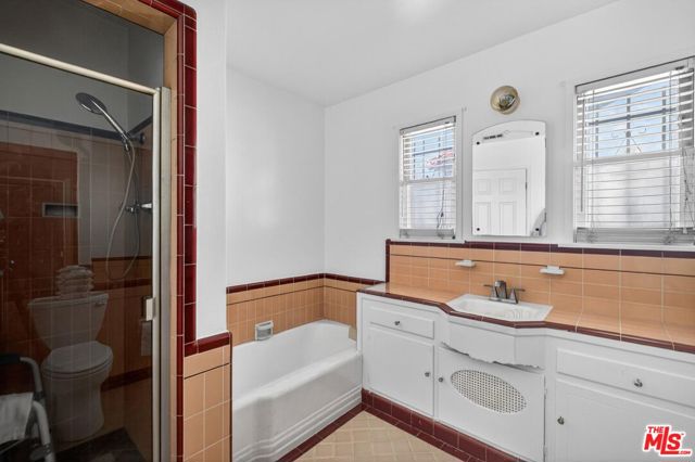 This inviting 2-bedroom, 2-bathroom (title shows 1 bathroom) traditional-style home offers classic character and comfortable living in one of Los Angeles' well-established communities. The home features a welcoming living room with a fireplace, perfect for relaxing or entertaining, along with a formal dining room that provides a great space for gatherings. The kitchen includes granite countertops and a cozy breakfast area, ideal for casual meals and morning coffee. Throughout the home you'll find a combination of hardwood flooring, carpet, and a charming original tile-style bathroom that preserves the home's timeless appeal. The additional bathroom with a shower stall is conveniently located off one of the bedrooms. Additional interior features include a laundry room with direct access to the backyard, adding everyday convenience. A door from the dining room opens to a private courtyard, creating a pleasant outdoor space for relaxing or entertaining. The property also offers a long driveway leading to a detached two-car garage, providing ample parking and potential additional storage. Conveniently located minutes from LAX, SOFI, Hollywood, Marina Del Rey, local new shopping developments, and major transportation routes, this home presents a wonderful opportunity to own in the Crenshaw Manor area of Los Angeles.