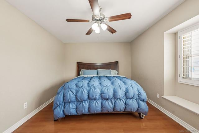 Located in one of the most desirable neighborhoods in Rancho Peñasquitos, this updated 4-bedroom home offers an exceptional combination of location and value with NO HOA and NO Mello-Roos. Situated at the end of a quiet street and within walking distance to top-rated schools including Deer Canyon Elementary, Mesa Verde Middle, and Westview High School. Inside, the home features hardwood floors, plantation shutters, dual-pane windows, and a brick fireplace in the main living area. The kitchen was recently refreshed and with quartz countertops and resurfaced cabinets, creating a bright and functional space for everyday living. Additional updates include new flooring on the stairs and recently painted exterior. Recent improvements also include owned solar, tankless water heater, copper re-piping completed in 2013, turf landscaping in the front and backyard for low-maintenance living, and an EV charger in the garage. The large private backyard offers plenty of space to relax, entertain, or create your ideal outdoor retreat. Convenient access to I-15 and SR-56 makes commuting easy while enjoying all that Rancho Peñasquitos has to offer.