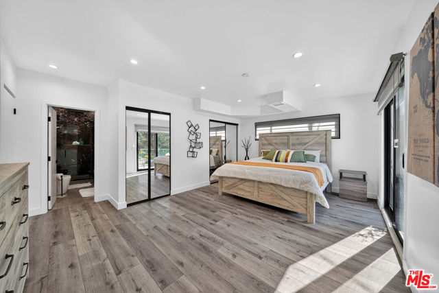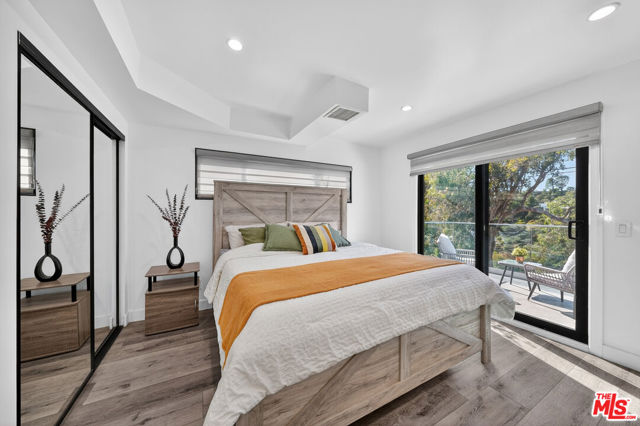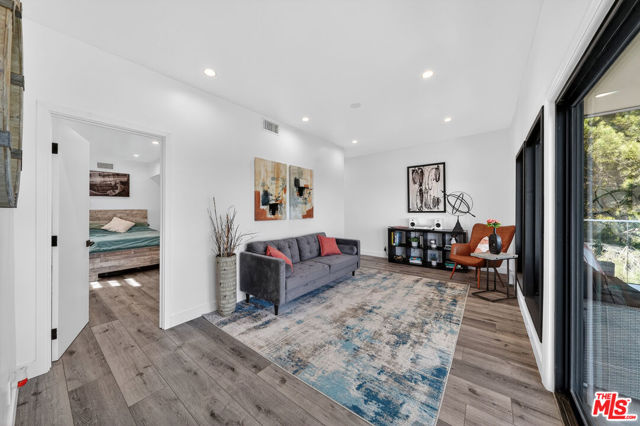Completely remodeled contemporary residence located in the prestigious Hollywood Hills within the sought-after Wonderland School District. Situated on a quiet cul-de-sac, this home offers privacy, expansive canyon and city views, and seamless indoor-outdoor living.Approximately 2,300+ square feet featuring 4 bedrooms and 3.25 bathrooms, thoughtfully redesigned with a functional and open layout. The main living area is filled with natural light through expansive glass doors and windows that open to three spacious balconies, capturing panoramic canyon, treetop, and city views.The remodeled kitchen includes custom cabinetry, designer finishes, and stainless steel appliances. Multiple bedrooms offer ensuite-style privacy, while the primary suite enjoys direct patio access and a private, view-oriented setting.The lower-level bedroom includes a separate exterior entrance, providing flexibility for guest quarters, home office, or potential ADU-style use (buyer to verify permits and zoning).Move-in ready with modern finishes throughout and located just minutes from Sunset Strip, Hollywood, and major Westside access routes, while maintaining a peaceful hillside atmosphere.A rare opportunity to own a fully updated home in one of Hollywood Hills' most desirable neighborhoods.