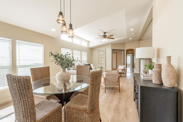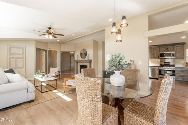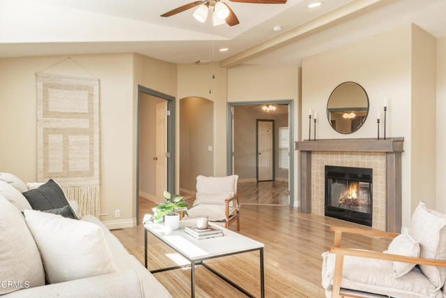 Welcome to this move in ready ,2008-built residence offering nearly 1600 square feet of thoughtfully designed living space in the highly regarded Mira Valle 55+ community. Light-filled and inviting, the home features high ceilings, luxury vinyl plank flooring, and expansive windows that capture the surrounding mountain views and bring the beauty of Ojai indoors.The spacious kitchen is both functional and welcoming, featuring a large center island, abundant cabinetry, and generous counter space--perfect for everyday living and entertaining alike. The primary suite serves as a private retreat, complete with two walk-in closets and an expansive ensuite bath offering double sinks, a soaking tub, and a separate shower.Comfort is ensured year-round with central air conditioning, ceiling fans, and a charming wood-burning fireplace ideal for cozy Ojai evenings. Step outside to enjoy the inviting deck and patio area surrounded by beautifully landscaped grounds, creating a peaceful setting to relax and enjoy the stunning mountain backdrop.Residents of Mira Valle enjoy resort-style amenities including a year-round heated pool, spa, clubhouse, and RV parking. Ideally located near guest parking and just moments from scenic hiking trails, the Ojai Bike Trail, and Ojai's charming shops and restaurants, this home offers the perfect balance of comfort, community, and the sought-after Ojai lifestyle.
