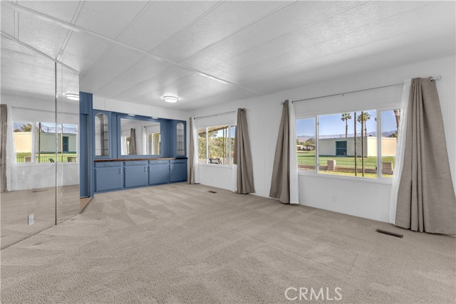 Set within a well established 55 and over community and positioned to take advantage of wide open views and convenient access to major shopping centers, this manufactured home offers a comfortable layout with thoughtful spaces designed for everyday living. Sitting on a permanent foundation, the property allows buyers to pursue traditional financing options while enjoying the benefits of community living. Inside, the home opens to a living and dining area that feels welcoming and functional, with recently cleaned carpet adding a refreshed feel to the main gathering space. The kitchen stands out with generous counter space and distinctive blue cabinetry, creating a workspace that is both practical and visually inviting, and the inclusion of a double oven makes it especially accommodating for those who enjoy cooking or hosting. The primary bedroom provides a spacious retreat with above average room size and an en suite bathroom featuring a standing shower. A well sized guest bedroom offers comfortable accommodations for visitors, while the guest bathroom also includes a standing shower for convenience. Natural light filters through dual pane windows installed throughout the home, helping maintain a pleasant interior environment while improving energy efficiency. Beyond the interior living space, the property continues to offer versatility with a sunroom that creates an ideal setting for hobbies, reading, exercise, or casual relaxation throughout the year. The outdoor areas are thoughtfully improved with concrete slabs surrounding much of the home, providing clean, low maintenance surfaces and additional usable space. Multiple covered patio areas create shade across the property, allowing for comfortable outdoor seating and gatherings while staying protected from the sun. A separate storage room adds valuable practicality for tools, seasonal items, or recreational equipment. With its combination of comfortable interior space, shaded outdoor areas, useful bonus spaces, and convenient proximity to shopping, this home presents an appealing opportunity for buyers seeking a relaxed lifestyle within a welcoming 55 and over setting.
