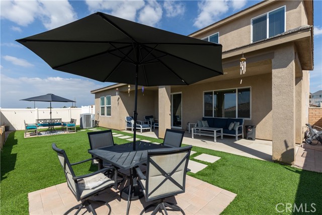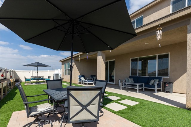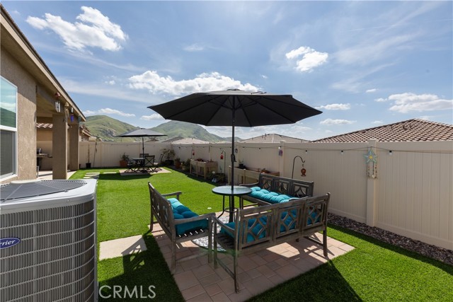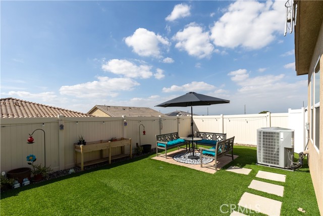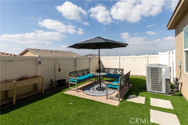 Step outside to your own private oasis! The fully landscaped backyard features lush turf, a charming covered patio connected to the home structure, and warm string lights that set the perfect mood for evening gatherings. There’s even a dedicated doggie area for your four-legged family members and a storage shed to keep everything organized.