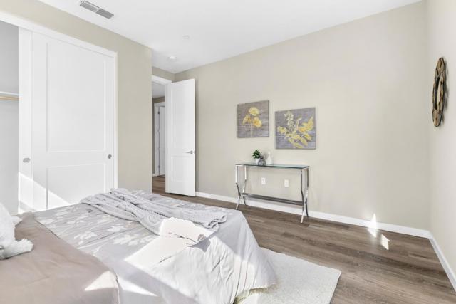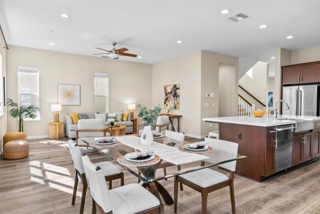 This gorgeous 3,090 sqft single-family home, built in 2019, is located on a desirable corner lot in the prestigious Asana community. It features 3 spacious bedrooms, 2 full baths, and 2 half baths. A versatile room on the first or second floor can be used as a living room, home office, guest room, or for many other purposes. The contemporary open floor plan showcases a chef's kitchen with high-end Italian appliances, quartz countertops, custom cabinetry, and an oversized island. Soaring ceilings, laminate flooring, and large windows fill the home with abundant natural light and scenic views.The luxurious primary suite serves as a private retreat with a massive walk-in closet and a spa-inspired ensuite featuring a soaking tub and walk-in shower. Enjoy outdoor living with a private balcony, covered patio, and paved side yard. Additional highlights include a fully owned solar system, EV charging capability, and ample storage throughout. The community enhances this luxurious lifestyle with resort-style amenities, including a clubhouse, playground, community garden, BBQ area, and walking paths. Conveniently located near major highways and within walking distance of Costco, Eastridge Mall, Starbucks, sports fields, and much more. Move-in ready! A must-see!
