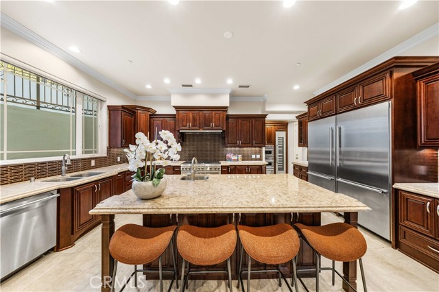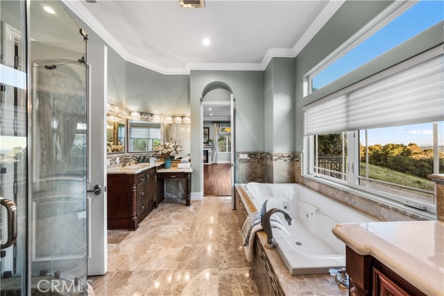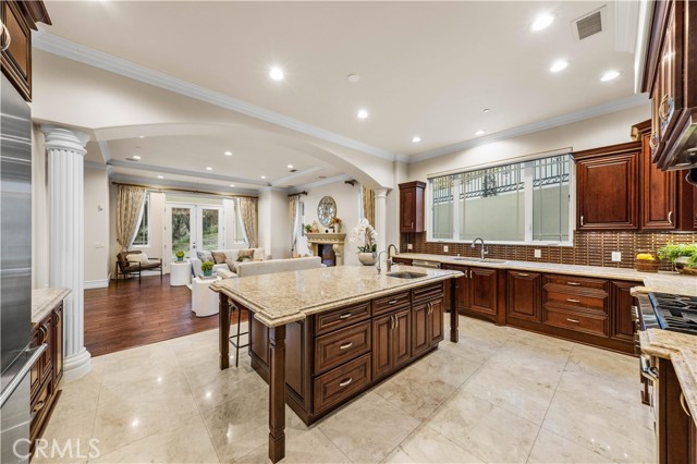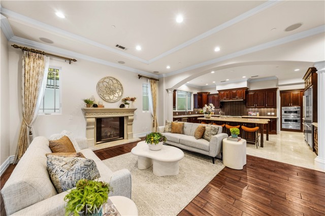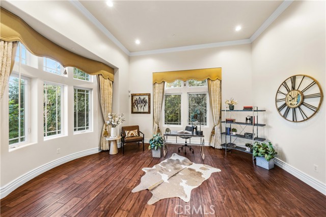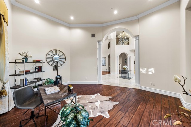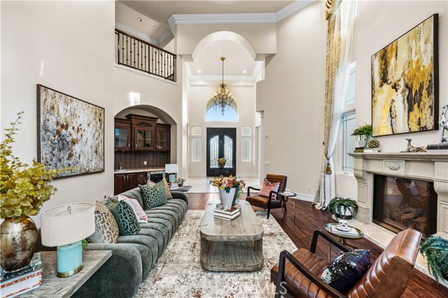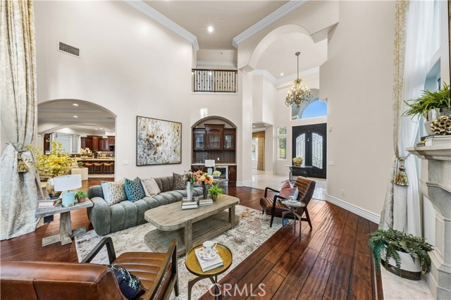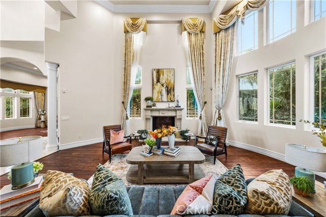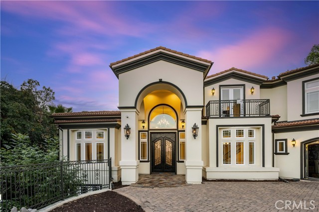 Perched behind a private gate at the end of a long-paved driveway, this custom Mediterranean estate offers exceptional privacy and scale on approximately 3.83 acres across three contiguous parcels in prestigious La Habra Heights. Built in 2015, the 5,100-square-foot residence features a dramatic grand foyer with marble floors, inlaid medallion, stylish staircase, and soaring 20-foot ceilings. Expansive windows fill the home with natural light, highlighting elegant formal living and dining spaces, a flexible office or study, and an open great room that flows seamlessly into the chef’s kitchen. Thoughtfully designed for comfortable living and effortless entertaining, the kitchen offers custom cabinetry, an oversized island, walk-in pantry, professional-grade stainless appliances, and French doors leading to the patio. The primary suite provides a private retreat with balcony, fireplace, spa-inspired bath, and an expansive walk-in closet. Three additional bedroom suites each feature private baths. A separate lower-level guest quarters with exterior access is ideal for extended stays or multigenerational living. The inclusion of two adjacent parcels creates a rare opportunity for a private compound, future development, or long-term land investment. Enjoy sweeping canyon and city-light views, a three-car garage, and the tranquility of La Habra Heights — all within convenient reach of both Orange and Los Angeles Counties. A rare offering of privacy, land, and potential.