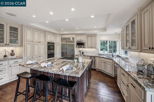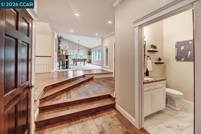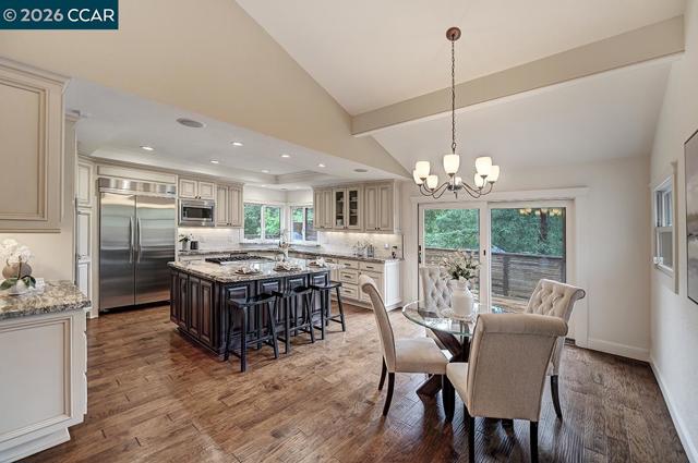 Wonderfully located in the heart of Alamo, this updated home offers convenient access to top-rated schools, the freeway, and the charming downtown areas of both Alamo and Walnut Creek. Featuring 5 bedrooms and 3.5 bathrooms, the home offers a desirable open-concept layout designed for comfortable living and entertaining. The updated kitchen is a chef’s delight with stainless steel appliances, a Wolf cooktop, dual ovens, warming drawer, granite countertops, and a classic subway tile backsplash. The spacious primary suite bathroom feels like a private retreat, complete with a spa tub, large stall shower with dual shower heads, and travertine countertops with updated fixtures. In the home you’ll find durable engineered hardwood flooring that blends style with everyday practicality. Step outside to a large, refinished deck perfect for entertaining, overlooking a Tahoe-inspired backyard with a sparkling pool and spa—an ideal setting for relaxing or hosting gatherings. The property also features a generous side yard with space for RV or boat parking and potential for an ADU or sport court, offering exceptional flexibility for future possibilities. Come take a look and experience everything this home has to offer.
