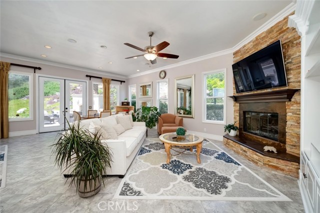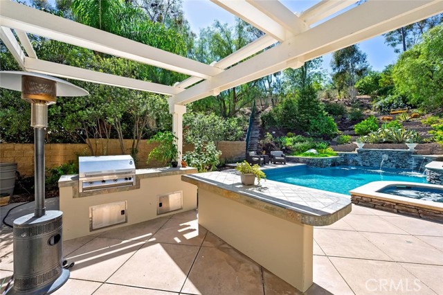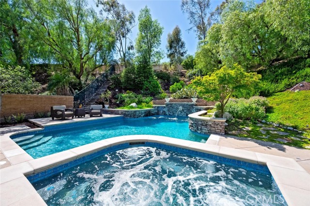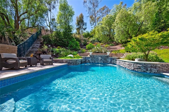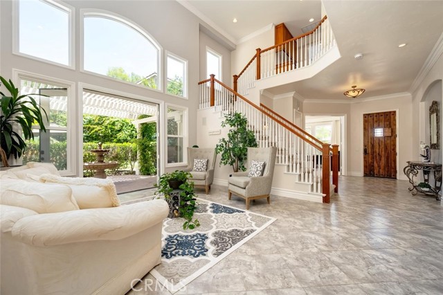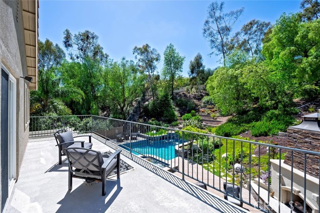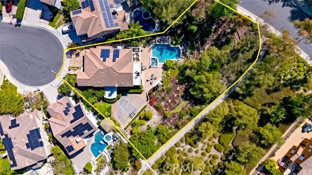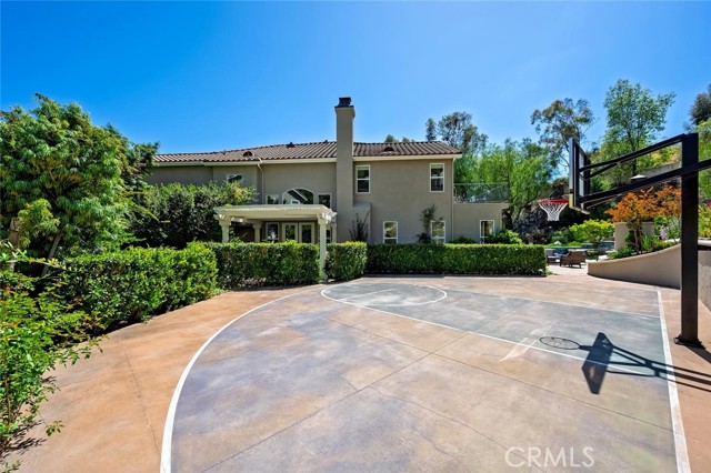 Welcome to your own private resort in the heart of Rancho Santa Margarita. Situated on a rare and unique lot approximately 1/2-acre. This exceptional property offers a lifestyle defined by space, privacy, and effortless indoor-outdoor living. The backyard is a true showpiece—featuring an oversized pool, a private half-court sport court, and an outdoor fireplace. The lush, organic landscape feels like your own personal orchard including mature avocado, pomegranate, grapefruit, lemon, and orange trees, along with grapevines and fig trees. This exceptional home showcases a light and bright open-concept design, creating a spacious and inviting atmosphere. The gourmet kitchen is appointed with a substantial island and prep sink, extensive cabinetry, and a butler’s pantry, opening to an impressive great room designed for both intimate gatherings near the fireplace or large scale entertaining. The formal dining room and dramatic living room—with two story ceilings, expansive windows, and French doors—open to a romantic courtyard with a tranquil fountain, perfect for quiet mornings, evening relaxation, or intimate gatherings. The main floor bedroom/office is adjacent to a ¾ bath, offering flexibility for guests or multi generational living. On the second level, the primary suite is a true retreat, featuring a spa-inspired bath with soaking tub, separate shower, dual vanities, private water closet, and a spacious walk in closet. With, an expansive private balcony that overlooks the resort style backyard, perfect for enjoying peaceful mornings or evening sunsets. There are two additional secondary bedrooms with walk-in closets, that share a Jack and Jill bath with individual vanities, while an additional bedroom suite enjoys its own private bath. A large bonus room offers endless possibilities as a media room, game room, or additional living space, the upstairs laundry room with a utility sink and cabinetry adds everyday convenience. Additional features include crown molding, fresh interior and exterior paint, exterior built storage, three car tandem garage, stone driveway and entry leading to a custom wood front door. Rancho Santa Margarita’s residents enjoy access to community amenities including pools, parks, scenic trails, and the nearby lake, along with top-rated schools, shopping, and dining just minutes away.