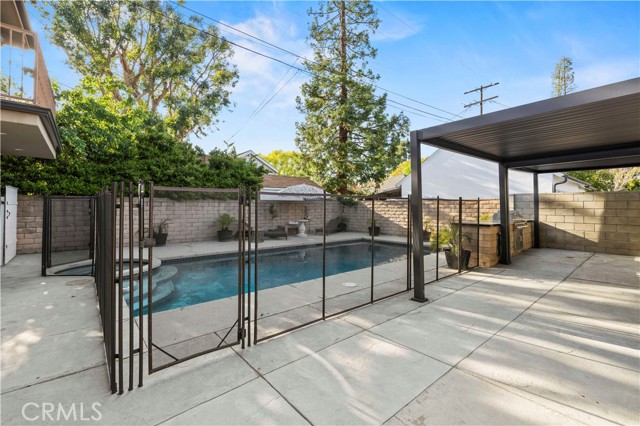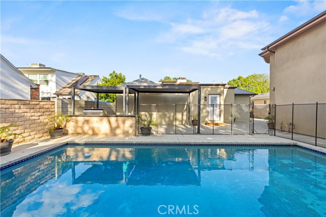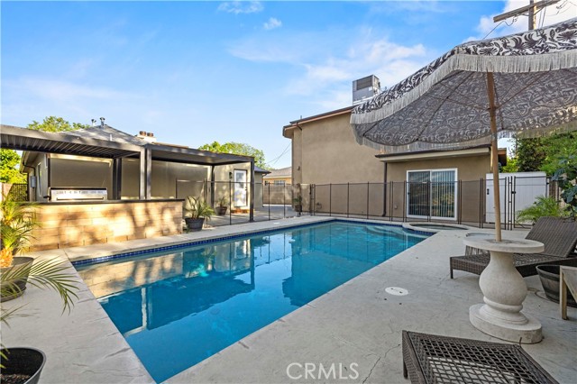 Get ready to be blown away by this incredible find in the heart of Valley Glen! Stunning classic bungalow style home with a private pool and a separate ADU, offering a total of 3 bedrooms, 2.5 bathrooms in the main house, and 2 bedrooms, 2 bathrooms in the ADU. The main house boasts hardwood floors, two indoor fireplaces, beautiful wood beam ceilings, and an updated granite kitchen that opens from a wainscoting formal dining room. The cozy family room, complete with built-in shelving, leads to a bright breakfast room with French windows overlooking the expansive backyard - perfect for entertaining! Featuring upgraded marble bathrooms, inside laundry, and additional rooms upstairs for an office, den, or playroom, this home offers both elegance and versatility. Enjoy the front yard's privacy wall of ten-foot tall privets and the oversized backyard with a covered patio and an Amazing BBQ area. The meticulously crafted ADU is done with quality in mind, offering a space that is both functional and stylish.