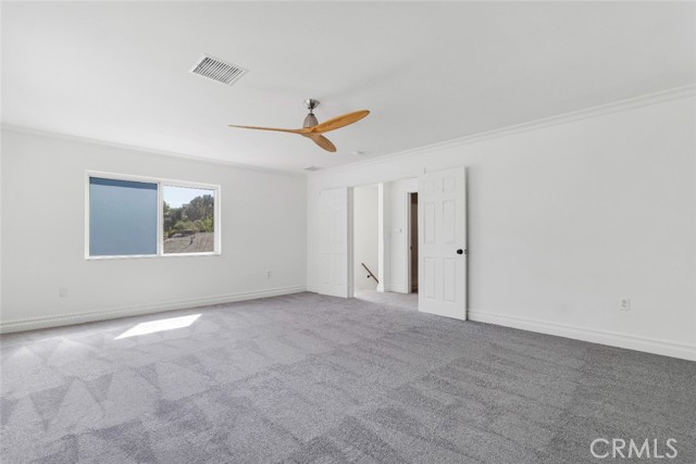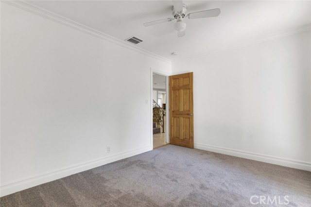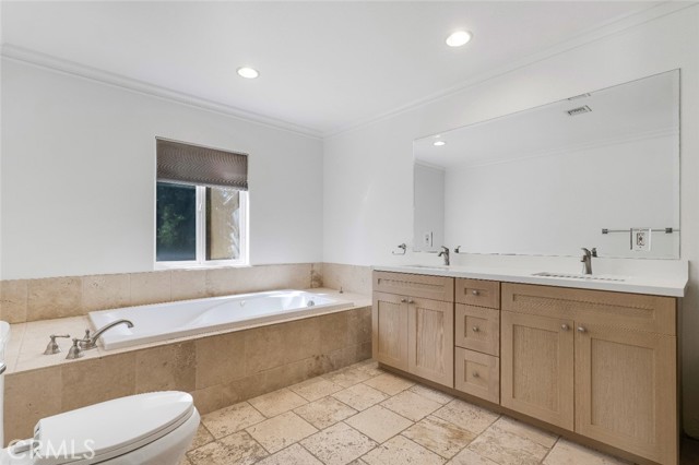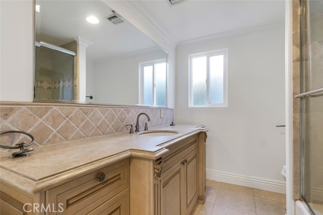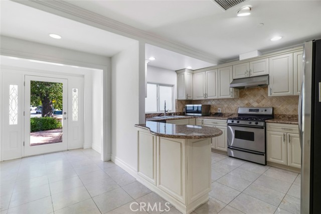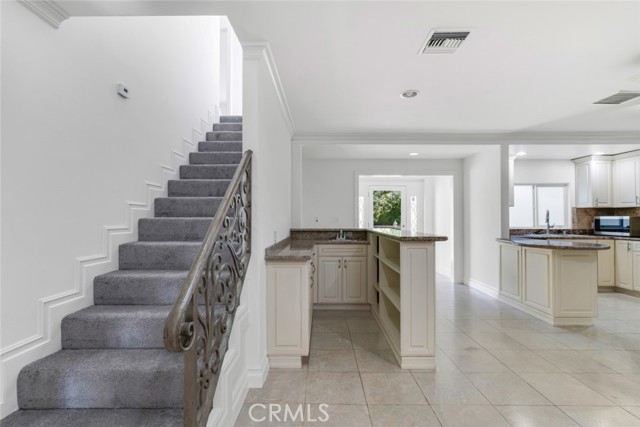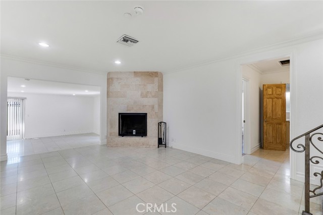 Located south of Ventura Boulevard in one of Woodland Hills’ most desirable residential pockets, this refreshed 4-bedroom, 3-bath, 2-story home blends inviting curb appeal with generous living space and a location that captures the best of the neighborhood. Appealing front landscaping, a curved tile walkway, and a classic Spanish tile roof create a memorable first impression, while inside, fresh paint, crown molding, and recessed lighting enhance the home’s warm, polished feel. The formal entry opens to spacious living areas that include a striking floor-to-ceiling fireplace, a full wet bar, tile flooring through the main entertaining spaces, and a step-down family room/den with ceiling fan and two French doors leading to the backyard. The inviting kitchen is well-equipped with Shaker-style cabinetry, contemporary hardware, granite counters, tile backsplash, and stainless steel appliances. The flexible layout includes three good sized bedrooms downstairs, one creating a private suite at one side of the house with a well-appointed ¾ bath, the other two on the other side, sharing a full hall bath. Upstairs is entirely the private primary suite; a spacious retreat with a large walk-in closet and an spa-like en-suite bath featuring a jetted tub and a separate walk-in shower. Outside, the backyard offers a generous tiled patio, grassy lawn area, planting beds, a large shade tree, and convenient storage shed, making it an ideal setting for relaxing, dining, or gathering with guests. An attached 2-car garage with direct access and laundry facilities adds everyday convenience. All of this is moments from the restaurants, cafés, and lively local energy of Ventura Boulevard, while still enjoying close proximity to the trails, open space, and natural beauty of the Santa Monica Mountains. Don’t miss out on this chance to make this your dream home!
