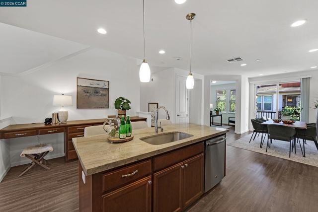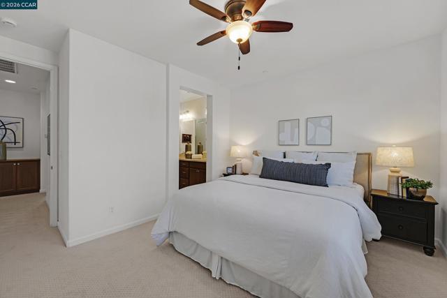 This stylish, NORTH facing, move-in-ready townhouse-style condo offers 3 en suite bedrooms for ultimate comfort and privacy plus office and 3.5 baths. The first floor features a private bedroom and full bath with walk-in closet—ideal for remote work/multi-generational living or guests. On the second floor, you’ll find an inviting open-concept living space with wood flooring, a bright living and dining area with balconies on both ends and a Chef's Dream kitchen equipped with a gas stove, stainless steel appliances, upgraded cabinetry and a spacious island. On this level is also an office and half bath. The third floor has a generous primary suite with walk-in closet, dual vanities, and shower plus an additional bedroom en suite. The third floor hosts a generous primary suite with a walk-in closet, dual vanities, and a walk-in shower, plus an additional bedroom en suite. Located just .2 miles from Cottonwood Creek School, little over a mile to Emerald Glen High School, and close to Fallon Sports Park, shopping, dining, freeway access, and major employers, this home blends convenience with modern comfort. A perfect blend of style, versatility, and location! Don't miss this opportunity.