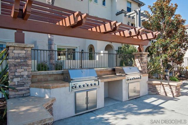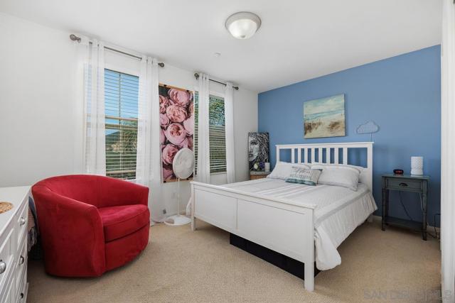 Step into this bright and open townhome. Enjoy privacy and scenic views from this spacious home. This desirable floor plan offers 2 bedrooms, each with plenty of closet space and their own ensuite bath featuring tub/shower combo. The first-floor office provides added flexibility, whether for guests, an extra bedroom or a home office that opens to a spacious patio perfect for relaxing and enjoying the views. The second floor hosts an open kitchen with updated cabinets, tiled backsplash, island/breakfast bar and dining area. The spacious living area with a fireplace and bright windows are perfect for taking in the views. 2-car side-by-side attached garage. The washer and dryer are also included, making this home truly move-in ready. Enjoy the community amenities, including pool, spa, BBQ area, and nearby playgrounds, parks, and trails. Located near the vibrant San Elijo Hills town center with shopping and restaurants, close to top rated schools and just a short drive to the beautiful beaches and attractions of North County San Diego.