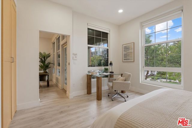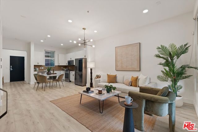 Experience the best of Playa Vista in this stylish 2-bedroom, 2-bath condo in the highly sought-after Lofts building. Offering contemporary LA living with private outdoor space, this residence blends modern comfort with striking industrial character. Soaring ceilings, abundant natural light, and an open-concept layout create an airy, inviting atmosphere throughout. The modern kitchen opens seamlessly to the living and dining areas and is equipped with upgraded LG appliances, including the refrigerator, dishwasher, and in-unit washer and dryer. A wall of windows fills the home with natural light, enhancing the bright and inviting living space. Just beyond, the private patio overlooks the park and offers the perfect setting for relaxing or dining al fresco under string lights. Both bathrooms feature shower-tub combinations, offering functionality and comfort. The flexible second bedroom is ideal for a home office or guest space, while the spacious primary suite includes a walk-in closet with built-ins and a spa-like feel. Set within a secure courtyard, the home is just moments from scenic walking paths, neighborhood cafes, restaurants, and everyday conveniences. Residents enjoy access to the Centerpointe Club, and Resort, featuring a resort-style pool and fitness center. Located near Playa Vista's shops, dining, parks, elementary school, Whole Foods, movie theater, and more, this home offers elevated, effortless living in one of Los Angeles' most desirable communities.