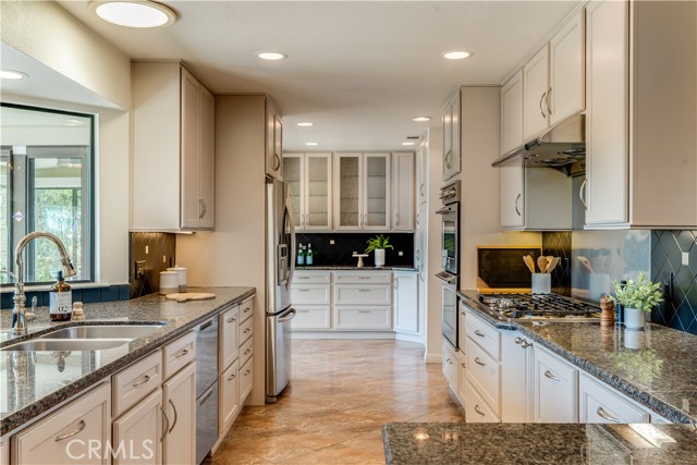 The main home offers an updated and spacious kitchen with butler’s pantry for extra prep space and storage. Off one side of the kitchen is the formal dining room, and on the other side, a peaceful sun room offering the perfect place to soak in the views. The inviting family room is open to the kitchen and offers a cozy gas fireplace, while the formal living room is adorned with a wall of floor to ceiling shelving and cabinetry. The laundry room and half bath powder room add convenience to this wing of the home.