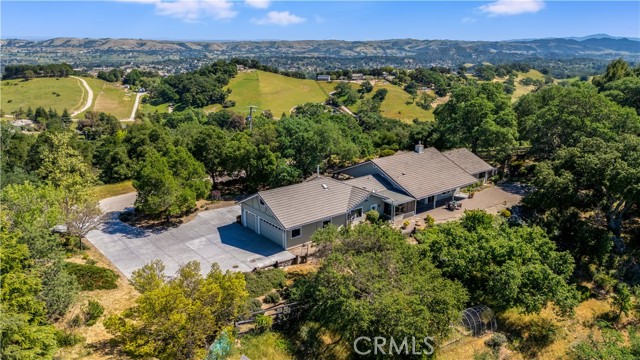 Welcome to this serene single-level home with guest unit set atop 4 oak-studded acres, offering breathtaking views and a lifestyle feeling like a true retreat. This property offers a 3 bed, 2.5 ba home, 1 bed/1 bath attached guest unit, owned solar, versatile 3-car garage with workshop area and above-garage bonus loft space.