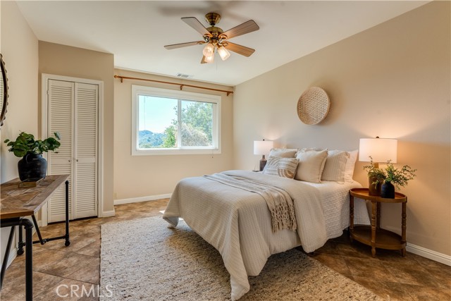Outside, the patio invites you to revel in the sweeping views, with easy access to raised garden beds and trails that wind through the property’s tranquil lower acreage. The home is equipped with fully-owned solar panels, a whole-house water softener, a reverse osmosis system in the kitchen, and a hot water recirculation pump. Additional amenities include concrete re-roof of 2 paper layers in 2019, 2 AC systems for house and guest unit, whole house fan, and a new drip irrigation system to the front of the property in 2025. The property is serviced by city water, natural gas, PG&E/3CE (Central Coast Community Energy) with the owned solar lowering your bills, and a private septic system.