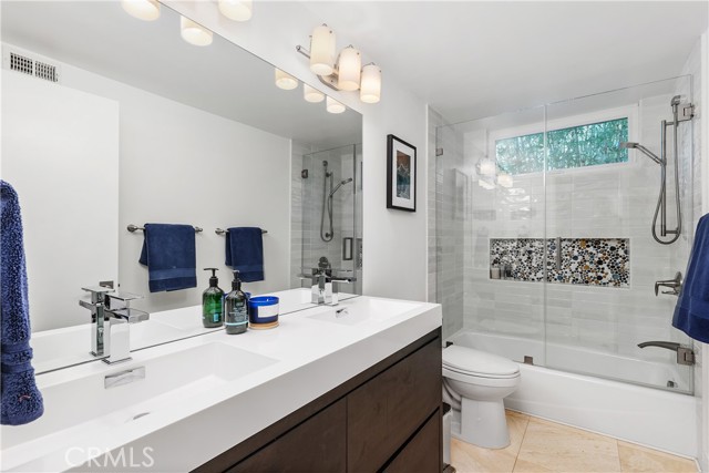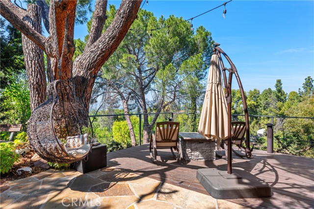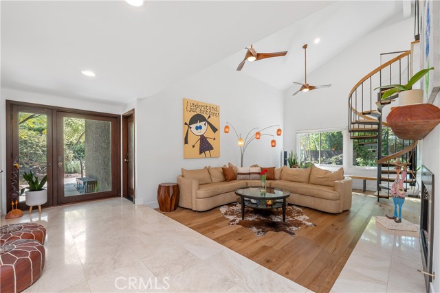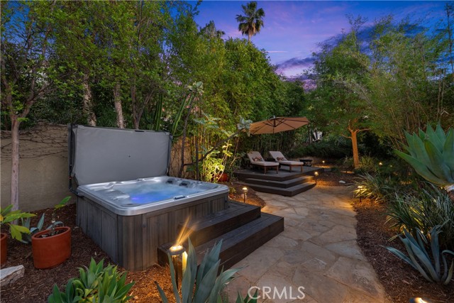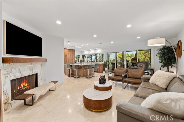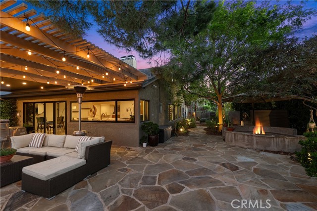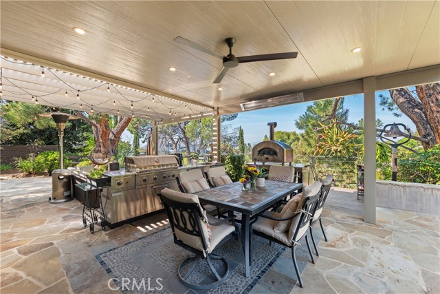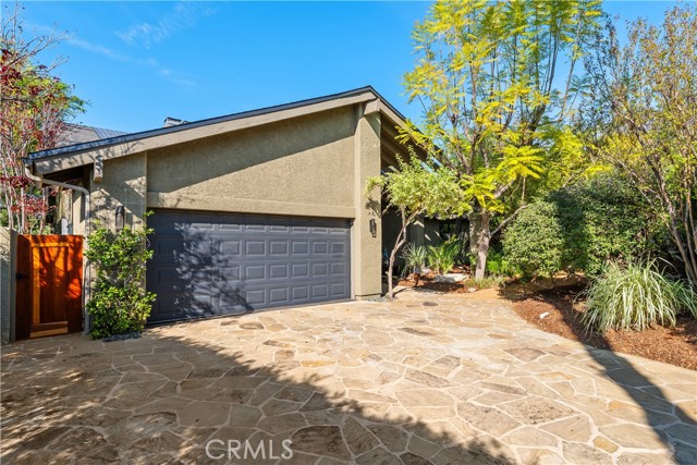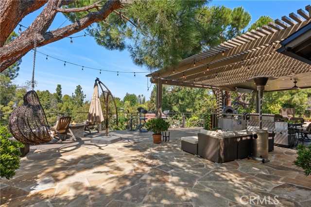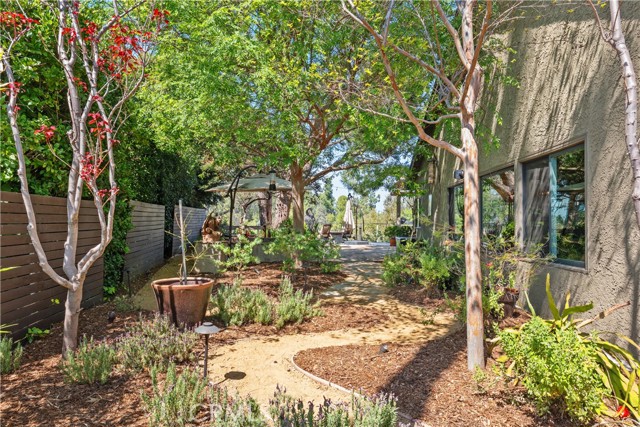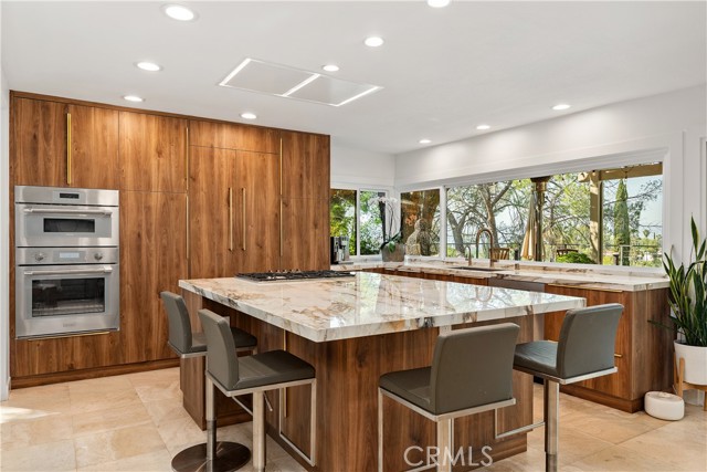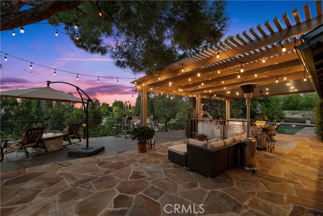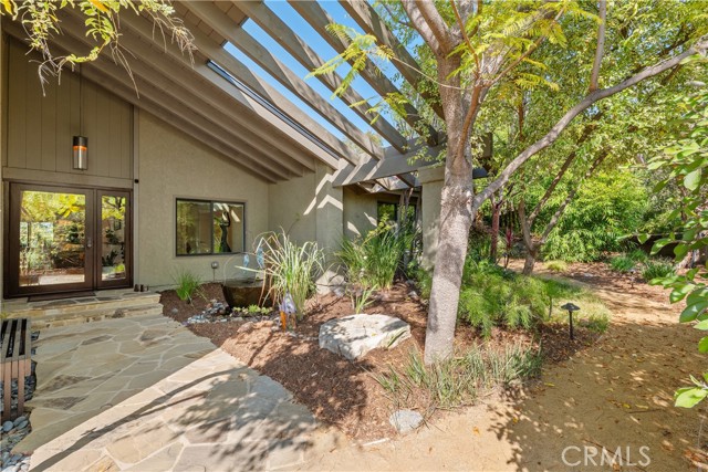 This absolutely stunning 4 bedroom, 3 bath, gated view home truly leaves nothing to be desired. A stone driveway and winding path lead to a custom glass front door, opening into a beautifully renovated single story home that seamlessly blends elegance and comfort. The dramatic two-story living room features an artistic spiral staircase leading to a loft, creating a striking architectural focal point. The gourmet kitchen, renovated in 2025, is a chef’s dream, showcasing top-of-the-line Thermador appliances, sleek porcelain countertops, and an oversized center island with a breakfast bar. Expansive corner windows frame breathtaking views and effortlessly bring the outdoors inside. The kitchen opens to a spacious family room, warmed by a cozy fireplace—perfect for everyday living and entertaining. Wide-plank wood flooring and travertine flow throughout the home. Double doors welcome you into the serene primary suite, complete with a generously sized, custom-built closet. The spa-inspired primary bathroom, renovated and gorgeous, features quartz countertops, dual sinks, and a luxurious steam shower with dual shower heads. This home boasts numerous upgrades, including owner-paid in full solar with a battery backup, updated pool equipment and lighting, electrical panel, intercom and cameras, a newer 2026 roof, and more. The incredible covered outdoor kitchen completed in 2025, offers heating and a ceiling fan, allowing for year-round enjoyment. Private and serene, the grounds are nothing short of magical, day and night. Watch breathtaking sunsets, gather around a fire pit with built-in seating, take a refreshing dip in the Pebble Tech pool, or unwind in the tranquil spa. As you wander this very private property, you’ll discover something special in every corner. Mature, arboretum-like landscaping reminiscent of the LA Arboretum creates a truly unforgettable setting. This property is part of the Bon Vivant Community and has access to Tennis Courts, a community pool and clubhouse with incredible views of the San Fernando Valley!