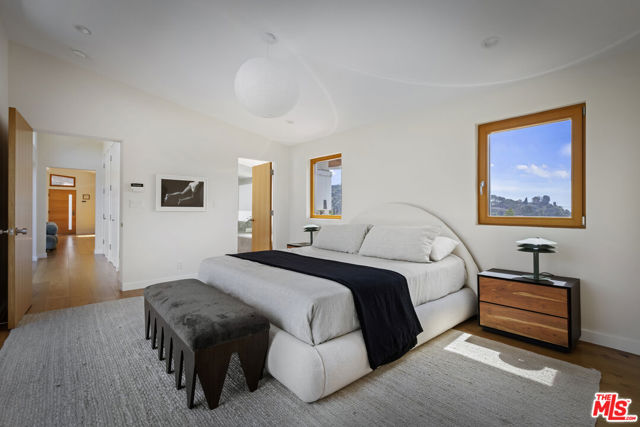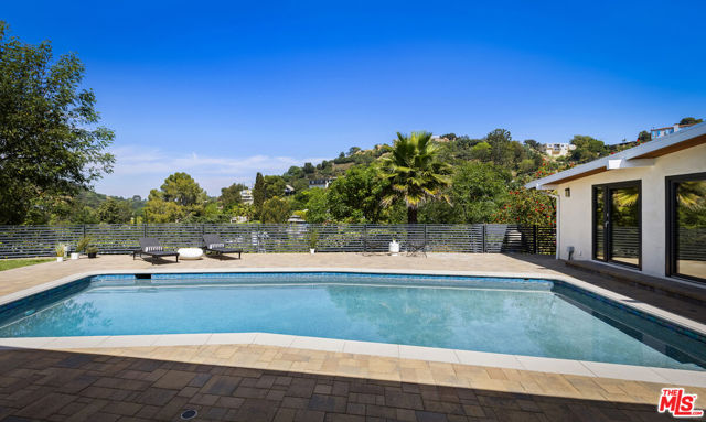 Single-story mid-century perched atop the hills of Nichols Canyon, offering privacy and sweeping 360-degree views: canyon ridgelines in every direction, city lights below, and on clear days, the ocean beyond. Renovated with a commitment to quality and environmental responsibility, the home features high-end, eco-conscious, and energy-efficient upgrades, including an owned solar energy system. The architecture stays true to its mid-century modern origins, designed for connection and visibility. Thoughtfully arranged, the primary suite sits on one side, with three additional bedrooms and two bathrooms on the other, all oriented around a pool and a flat grassy backyard. The primary suite features a walk-in closet and a spa-inspired ensuite with a soaking tub, all three spaces framed by breathtaking views. The kitchen has been updated with sustainably sourced wood cabinetry and Miele appliances. It opens onto the dining and living areas and extends to a south-facing deck with sunset views. Floor-to-ceiling Gaulhofer windows and sliding doors crafted from premium Austrian wood, double-paned for energy efficiency and acoustic comfort, bring in natural light while framing the surrounding landscape. Skylights soften and diffuse daylight throughout. Every detail, down to the finely finished closets, reflects a dedication to both form and function. Gated and secured by a Hikvision CCTV system and Turbolock digital entry, the property also includes a two-car garage and four additional parking spaces, with outdoor areas thoughtfully arranged for relaxing and entertaining. A rare offering that balances architectural integrity, environmental mindfulness, and understated luxury, this residence is designed for those who value quality, privacy, and a thoughtful way of living.