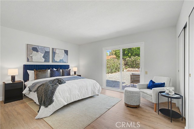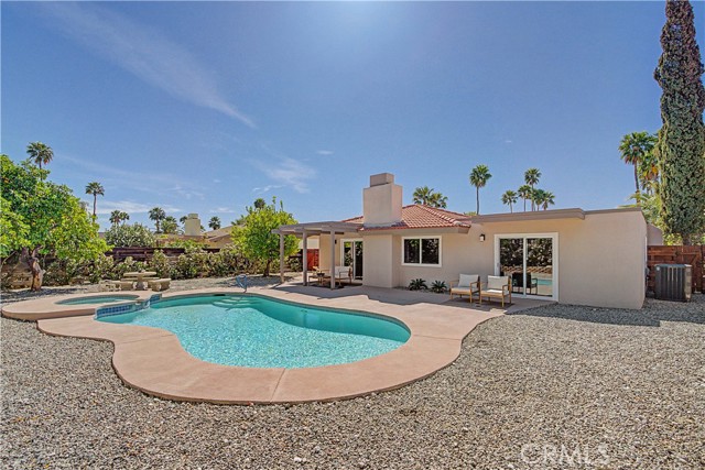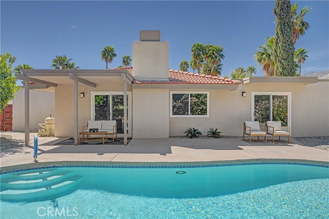 The primary suite comfortably fits a king bed and offers direct access to the backyard and pool, creating a seamless indoor-outdoor connection. Two additional bedrooms share a central bathroom, offering flexibility for guests, a home office, or additional living needs. Dual-pane windows and sliders enhance efficiency and natural light throughout. Located in a short-term rental-friendly area just minutes from downtown Palm Springs, this home is ideal as a full-time residence, weekend getaway, or investment opportunity.