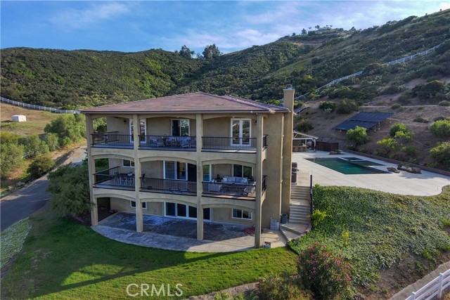Welcome to a truly unique multi-generational estate offering flexibility for both lifestyle and income. This expansive 3-story custom home features a fully functional basement apartment and a detached casita - ideal for rental income, guest accommodations, or extended family living. Designed with versatility in mind, the property is well-suited for hosting events, retreats, or even small weddings, creating a rare opportunity to own a true income-producing estate. Enjoy a beautiful saltwater pool with solar heating, perfect for year-round relaxation and entertaining. Surrounded by natural landscaping, take in refreshing afternoon breezes and sweeping valley views from multiple balconies. Additional highlights include two RV garages, paid solar, a high-producing well, septic system, tankless water heaters, a water softener, EV charging capability, and a back-up generator - delivering both efficiency and energy independence. Conveniently located just minutes from top-rated Murrieta schools, shopping, dining, and easy access to the 15 and 215 freeways. This is more than a home - it’s a smart investment, a private retreat, and a property filled with opportunity!