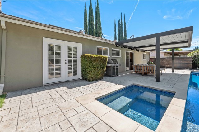 Resort-style living at an affordable price in this upgraded West Hills single-story featuring 3 bedrooms, 2 bathrooms, and 1,250 square feet of thoughtfully designed space. The property boasts a stunning backyard with a recently built pool with walkable pool cover, relaxing spa, custom deck, new pool equipment/heater, an electric pergola, natural gas fire pit, and drought-tolerant landscaping for seamless indoor and outdoor living. Located on a quiet street, the home includes all appliances—stainless steel refrigerator, stackable washer and dryer—and offers remodeled bathrooms (primary has heated floor!), custom closets and laminate flooring throughout. Spacious garage with electric car charger. Enjoy proximity to excellent charter schools (El Camino, Haynes, Hale - per LAUSD), Warner Center shopping, restaurants, and miles of scenic nature trails in nearby Ahmanson Ranch State Park with picturesque views of the Santa Susana Mountains. This home is ready to deliver an exceptional lifestyle combining comfort and luxury.