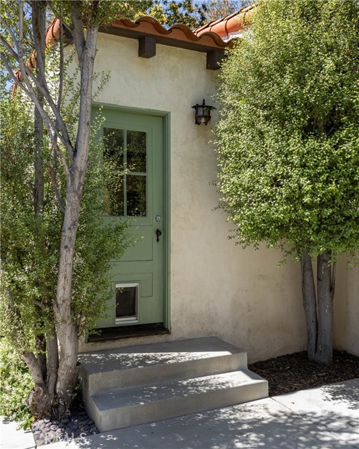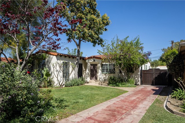 The unique Spanish style architecture of this property prominently features the original front door alcove as you walk up. The front yard has mature flowering trees, foliage and a grass lawn. The stucco, red tile roof detail, wrought iron details, and the original wood framed windows have all been well maintained and preserved.
