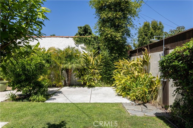 The low-maintenance backyard has mature foliage, fruit trees, raised vegetable planters, concrete patios with electrical outlets, & outdoor shower. Large 2.5 car garage with workshop space, sink, & its own 50 amp electric panel. Garage roof was redone in 2025. The backyard & garage are securely gated with a high custom gate, & driveway in front of garage. Long driveway in front also. Privacy fencing, jasmine & bamboo enclose the backyard.