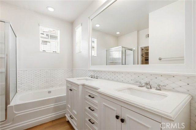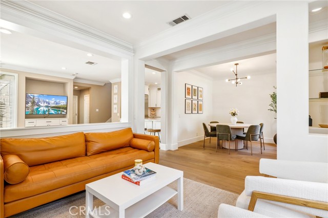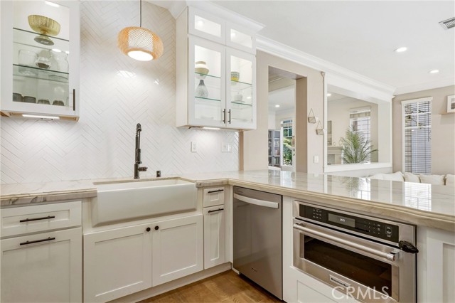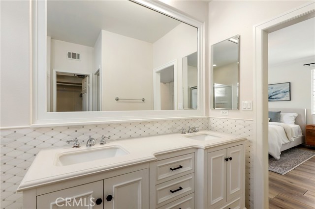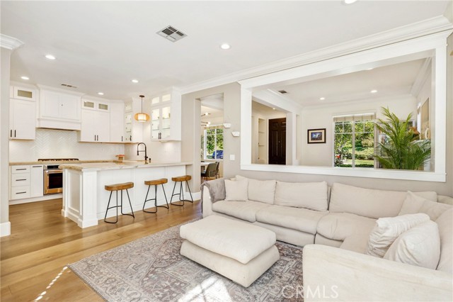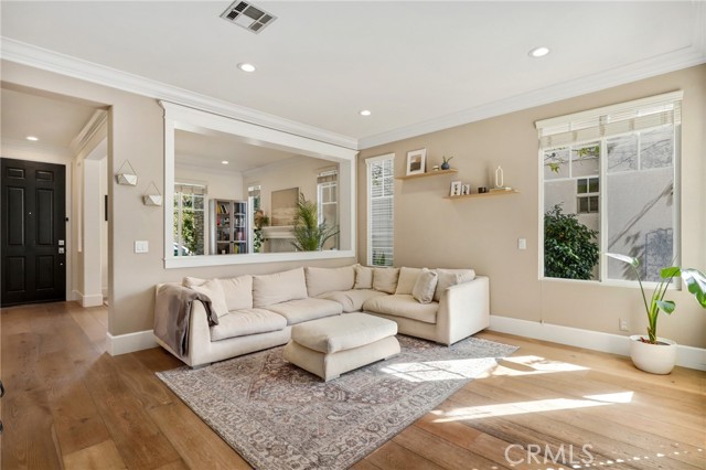 Nestled on a desirable single-loaded street in the heart of Ladera Ranch, this beautifully upgraded residence offers the perfect blend of style, comfort, and functionality. Boasting 1,818 sq. ft. of living space, this 3-bedroom, 2.5-bath home is thoughtfully designed for both everyday living and entertaining. From the moment you enter, stunning hardwood flooring flows seamlessly throughout the home, providing a durable, stylish foundation that complements the open and airy living spaces. The floor plan features spacious living and dining areas that transition naturally into the heart of the home — a stunning, custom-remodeled kitchen. Designed to impress, the kitchen showcases sleek finishes, stainless steel appliances, a charming farmhouse sink, and thoughtful details that elevate both form and function. The downstairs powder bathroom was also recently remodeled. All three bedrooms are located upstairs, offering privacy and convenience. The primary suite serves as a private sanctuary, highlighted by a spa-inspired bathroom with dual sinks, a walk-in shower, custom tilework, and a large soaking tub. A convenient upstairs laundry room adds everyday ease and practicality, while the home has been thoughtfully re-piped with PEX for added peace of mind. Step outside to enjoy true indoor-outdoor California living. The expansive side patio offers ample space for dining, entertaining, or relaxing, while the additional side yard provides the perfect setup for extra storage or a dog run. The home also includes an attached two-car garage with epoxy floors, offering convenience and extra storage. With no homes directly across the street, the single-loaded location enhances privacy and curb appeal, with plenty of parking for friends and family. Ideally situated within close distance to Ladera Ranch Elementary and Middle School, and just moments from the community’s renowned amenities including pools, parks, trails, water park, dog park, skateboard park, and year-round events, this home offers an exceptional lifestyle in one of Orange County’s most sought-after neighborhoods.