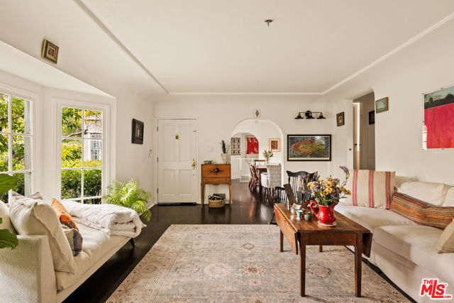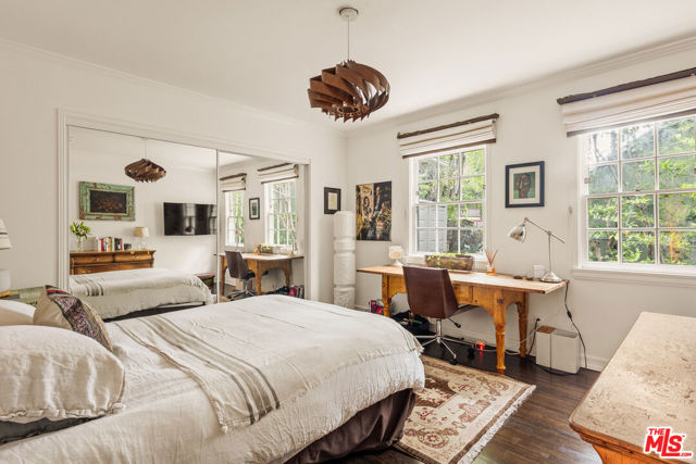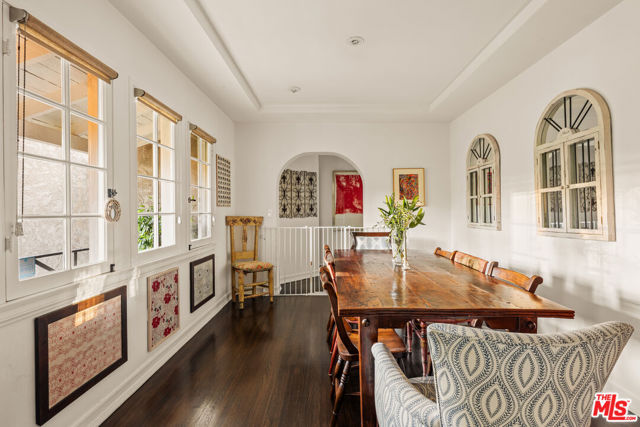 Gorgeous storybook traditional on a quiet lane off Valley Vista, within the highly regarded Dixie Canyon Elementary School district. Set among beautiful tree-lined streets with easy access to the area's beloved dining and shopping along trendy Ventura Blvd. Step inside to rich espresso hardwood floors, tray ceilings, graceful arched doorways, and elegant base molding that add warmth and architectural character throughout. Anchored by an inviting fireplace, the chic living room evokes a designer treehouse feel, with a large bay window framing lush greenery and filling the space with natural light. A thoughtful floor plan offers effectively two primary suites, while a third bedroom and dedicated office provide exceptional flexibility for work-from-home professionals or growing families. The backyard is where life unfolds surrounded by a veritable grove of lush trees and foliage, creating a sense of serenity and privacy. Multiple vignettes invite romantic moments, quiet reflection, or sophisticated entertaining reminiscent of a five-star retreat. The ambiance is effortlessly relaxed, with room to accommodate a pool for both immediate enjoyment and future potential. A bonus space, accessed through the side yard, is ideal for yoga, a work space, or a creative studio. A place to slow down, settle in, and truly feel at home.