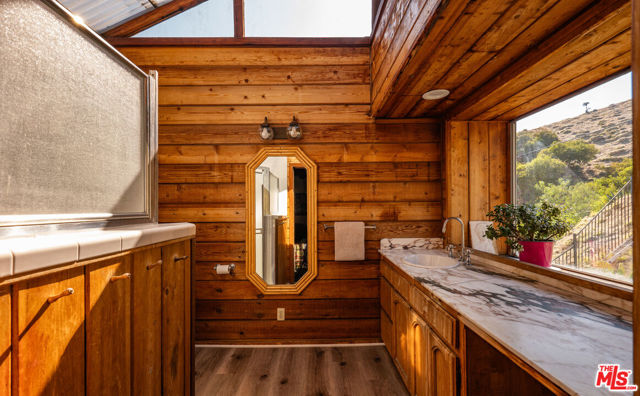 The Hollywood Sign Chalet -- A Living Sculpture Beneath the Icon. Perched just beneath the towering letters of the Hollywood Sign, 6105 Mulholland Hwy is not simply a home it's a living, breathing work of art. Built in 1963 and anchored at the end of a private road, this rare A-frame chalet offers one of the most iconic vantage points in Los Angeles. It is the closest residence to the Hollywood Sign, a location steeped in history, myth, and creative energy. The structure itself feels like a sculpture, an angular wood-framed ode to mid-century modernism, softened by time and surrounded by raw California wilderness. Inside, soaring vaulted ceilings and glass walls welcome shifting light throughout the day, playing across warm wooden textures and inviting spaces. Every element of this home has a tactile, storied quality; it's a place where silence holds meaning, and architecture elevates experience. Once home to members of the legendary 1960's band The Association known for timeless hits like "Cherish," "Windy," and "Never My Love" this property has a rare musical provenance. It has been immortalized in Linda McCartney's celebrated photography book The Sixties, is the birthplace of the first computer-generated people, and has welcomed countless artists, dreamers, and travelers over the years. Outside, expansive decks overlook a panorama that is almost surreal, Griffith Park sprawls directly to the east, the skyline of Los Angeles stretches to the horizon, and the Hollywood Sign looms just overhead, seemingly close enough to touch. A jacuzzi spa nestles into the hillside, offering a private retreat after sunset hikes or quiet mornings among the trees. Despite its deep sense of solitude, the property is mere minutes from Hollywood, the Bowl, studios, nightlife and has its own fully built out recording studio. It has also proven to be an exceptional investment, consistently performing as a top-tier vacation rental featured in Travel + Leisure as one of California's best Airbnbs, and showcased on the Emmy Award-winning show STAYCATION. This is a rare offering: a home where architecture, history, and artistry converge. A space that inspires. A story waiting to be continued. This is not just a place to live it's a place to create, to retreat, and to belong to something iconic.