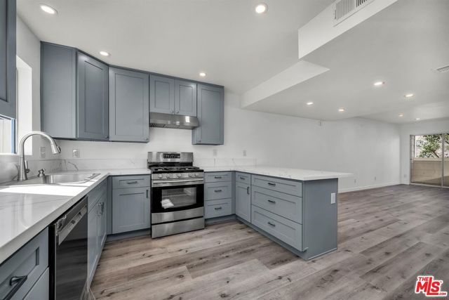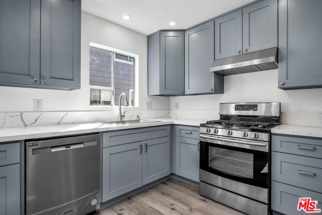 Step into this stunningly remodeled tri-level 2-bedroom townhome in Sherman Oaks with private access garage, offering both style and functionality. This walk-up unit welcomes you with an open-concept living space, featuring a bright and modern kitchen with brand-new cabinetry, quartz countertops, and a charming breakfast nook. The spacious living and dining area boasts a cozy fireplace and a front-facing balcony, perfect for morning coffee or evening relaxation. A conveniently located powder room completes the main level. Upstairs, you'll find 2 generously sized bedrooms, including a primary suite with an ensuite bathroom and private balcony. Both bathrooms have been completely renovated, and recessed lighting throughout enhances the home's contemporary appeal. The private two-car tandem garage offers direct access from the living room and includes space for a washer/dryer and ample storage. This well-maintained, secure complex features a sparkling community pool, spa, and gazebo ideal for relaxation and entertaining. Located close to trendy restaurants, LA Valley College, markets, shopping, and the Orange train Line close by. This townhome is a perfect blend of comfort, convenience, and modern living. Don't miss this incredible opportunity