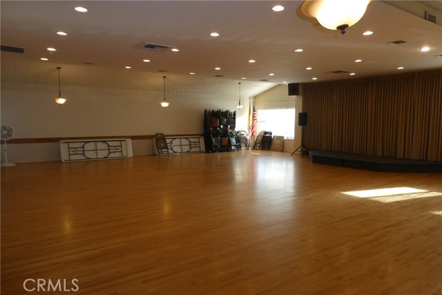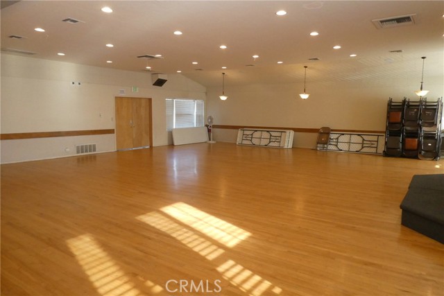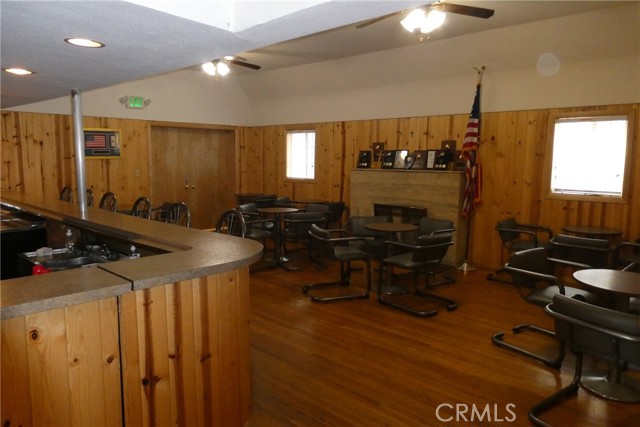 Main level used as a city approved meeting hall with large open area, built-in bar, lounge with tables and chairs, reception/greeting area, pool table, full kitchen, private office, storage areas and 2 restrooms.