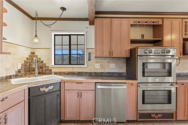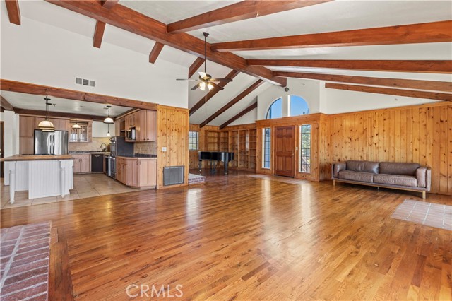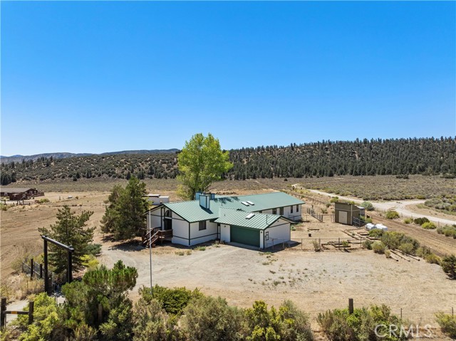 Nestled in the mountains and surrounded by natural beauty, this magnificent estate combines timeless craftsmanship with modern updates on over 5 acres bordering 600 square miles of National Forest. Recently refreshed with new exterior and interior paint and beautifully refinished hardwood floors, the single story custom home offers sweeping panoramic views and trails right outside your door. The residence features 5 bedrooms, 2.5 bathrooms, and nearly 3,600 square feet of thoughtfully designed living space. The expansive living room showcases vaulted ceilings with exposed beams, while the chef’s kitchen is equipped with a walk in pantry, double oven, marble countertops, artistic backsplash, custom cabinetry, and a striking butcher block island. Radiant heated floors warm the kitchen and dining areas, and three fireplaces add inviting charm throughout the home. The primary suite is a private retreat with vaulted ceilings accented in exotic Asian birch, a cozy fireplace, and a spa inspired bath with a cast iron tub and oversized shower. Built for both beauty and resilience, the property includes a lifetime metal roof, full sprinkler system, dual propane tanks, boxed in eaves, complete fencing with an electric gate, and a backup generator powering the entire home and well pump. Equestrian facilities include corrals and a powered tack room, offering a ready made retreat for horse enthusiasts. Located just 45 minutes from Santa Clarita, this rare estate delivers the perfect blend of seclusion, modern updates, and timeless natural beauty.