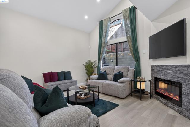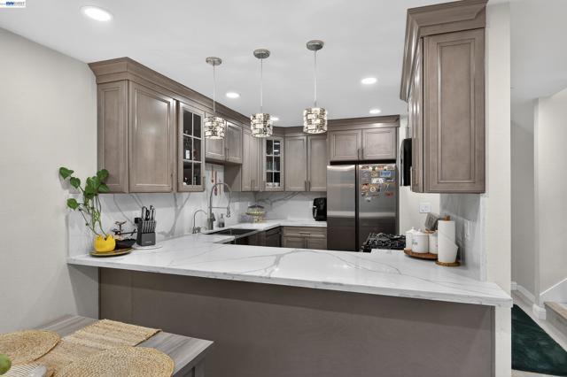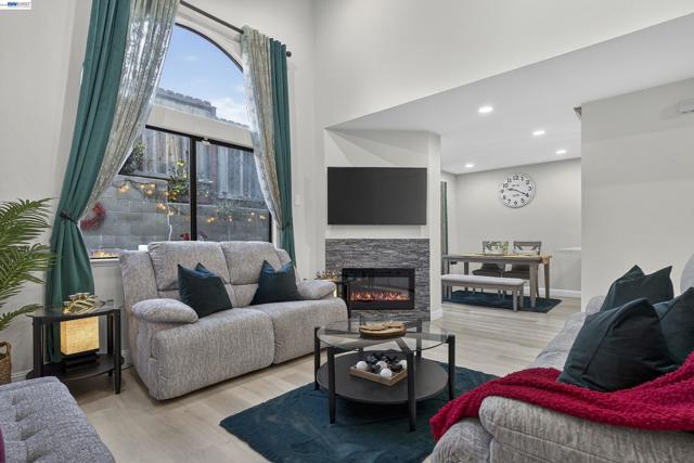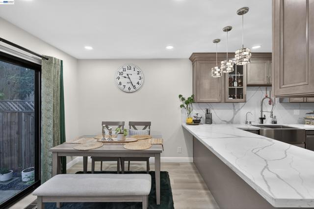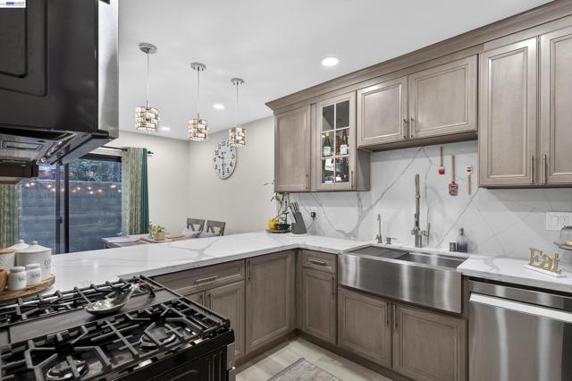This stunning Fully Furnished, 3-bedroom, 2.5-bath home has been thoughtfully updated throughout and offers modern style with inviting comfort. The gourmet kitchen features brand-new cabinetry, granite countertops with coordinating backsplash, an oversized stainless steel farmhouse sink, and stainless steel appliances—perfect for both everyday living and entertaining. New laminate flooring and recessed lighting enhance the home’s fresh, contemporary feel. The open floor plan flows seamlessly into the living room, highlighted by vaulted ceilings and a striking fireplace that creates a warm and dramatic focal point. Custom paint throughout the home provides a clean, move-in-ready canvas. The spacious primary bedroom suite boasts vaulted ceilings and a beautifully updated en-suite bathroom with laminate flooring and a dual vanity topped with granite counters. Additional bedrooms are well-sized and versatile for guests, home office, or family needs. Dimmable lighting throughout. A 2-car garage offers convenient parking and includes built-in cabinets for additional storage. Step outside to the private rear yard featuring a patio off the dining area, complemented by low-maintenance landscaping including a drip system and fruit trees along with an additional deck—perfect for relaxing.
