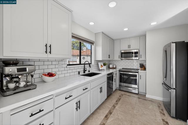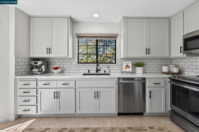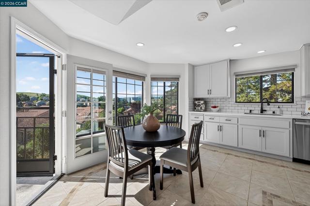 Incredible views from this upper level condo in the desirable, gated Canyon Lakes community. This home features a beautifully updated kitchen with shaker cabinetry, stainless appliances and stylish quartz countertops. The high ceilings and hillside views from every angle, create an impressive feeling you'll enjoy for years to come. Kitchen opens to spacious living room with updated fireplace. Primary suite includes an additional nook which makes a perfect work station for work from home days. Bathroom features a large vanity & double closets. Plenty of storage in this home with 2 large entry closets and hallway linen cabinet. Oversized 2 car garage. Other features include; beautiful vinyl plank flooring throughout, fresh paint. oversized laundry closet & more. This one truly shines. HOA covers water, sewer, hazard insurance, exterior maintenance including roof, paint etc. Canyon Lakes Living features: 24 Hour Security gate, 4 swimming pools, lighted tennis, pickleball & basketball courts, award winning landscaping, open space & hiking trails. Open Sat and Sun, April 4th and 5th from 1-4.