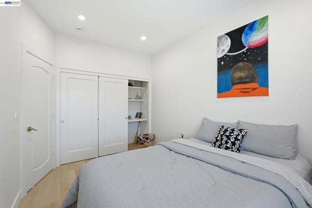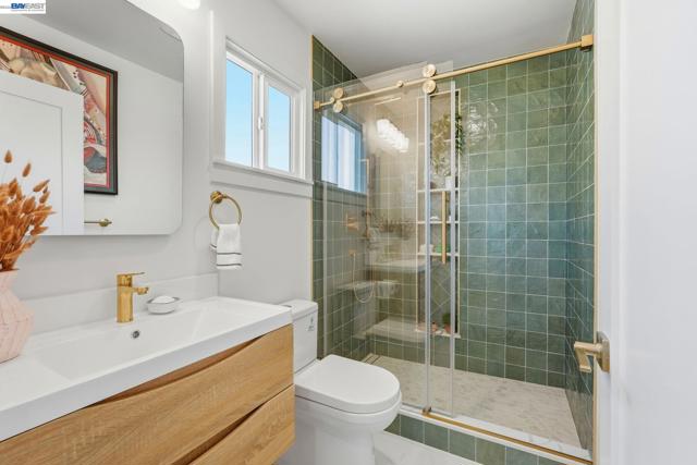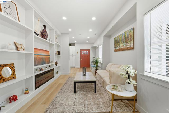 Exquisitely reimagined Craftsman blending timeless character with modern sophistication. Originally built in 1912 and extensively rebuilt in 2024, this turn-key residence showcases major upgrades, including a newer roof, complete foundation replacement, updated electrical & plumbing, tankless water heater, sewer lateral, sidewalk compliance & more! Designed for both comfort & style, the home features a stunning contemporary kitchen that seamlessly opens to a spacious dining area—ideal for everyday living and effortless entertaining. The living room is thoughtfully appointed with custom built-in shelving and a sleek electric fireplace, creating a warm yet elevated ambiance. The primary suite offers a serene retreat with a modern bathroom and a generously sized closet with custom built-ins, combining functionality with understated luxury. Exterior enhancements include a low-maintenance yard, an extended driveway accommodating multiple vehicles, and a newer fence with front iron gate—providing enhanced privacy, security, and curb appeal. Approved ADU plans by the City of Oakland present a rare opportunity for future expansion, rental income, or multi-generational living. Convenient access to HWY 580, 880, 13, and BART, offering seamless connectivity throughout the Bay Area.