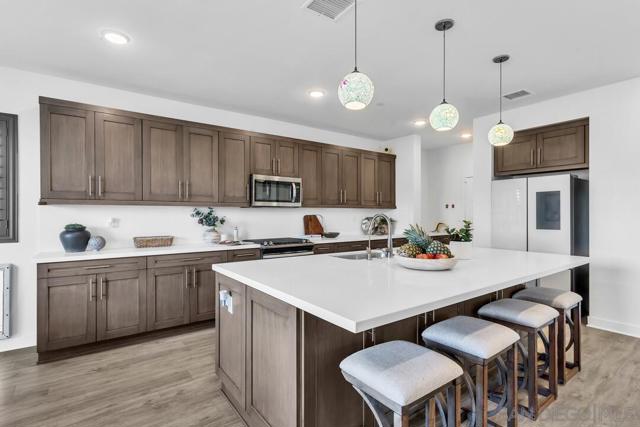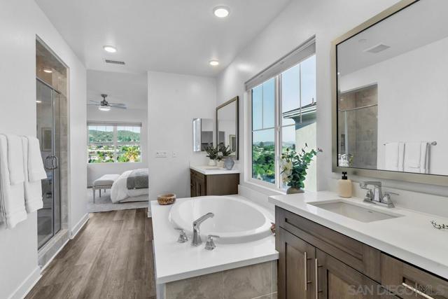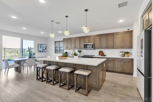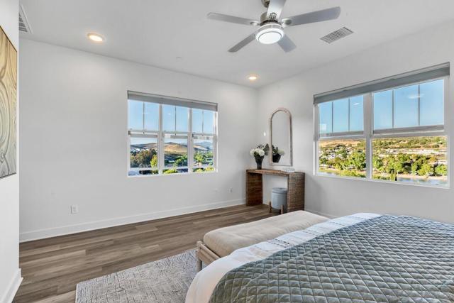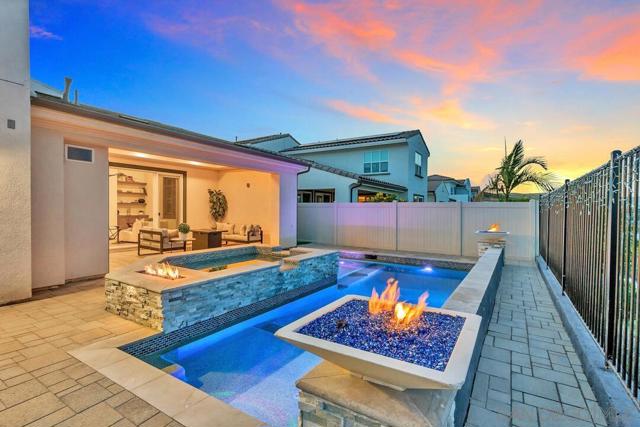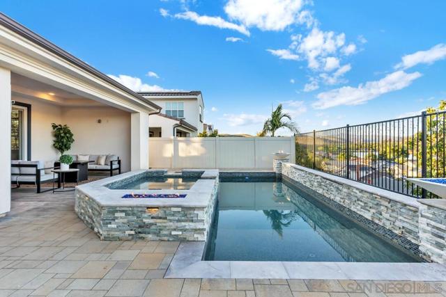 Welcome to the desirable Weston neighborhood, known for its charm, convenience, easy access to the 52 Freeway, and strong pride of ownership that helps preserve the community’s value. Recently appraised at $1.7M, this 2019-built home offers the perfect blend of style, comfort, and flexibility. The first level includes an en-suite bedroom, and the current office can easily be converted into a bedroom. Inside, the home features 12-foot ceilings, updated flooring throughout, and an open concept layout that is perfect for everyday living, family gatherings, and entertaining. The primary suite offers a spa-like bathroom with an oversized tub and a large walk-in closet. Smart energy efficient features include paid off solar, LED lighting throughout, dual-pane windows with shutters. The spacious 3-car garage includes epoxy flooring, a tankless water heater, and is EV charging ready. The backyard is designed for entertaining, with a pool, oversized jet spa, and a built-in outdoor bathroom with a shower. It also captures sweeping panoramic views of Santee Lakes, the city, and surrounding mountains. The Weston community offers great amenities including a clubhouse, lap pool, recreation center, and a large park. The home is also close to top-rated schools, shopping, dining, and outdoor recreation such as Santee Lakes and Mission Trails. This home truly offers the best of modern comfort, style, views, and location.