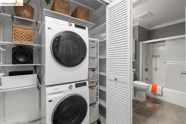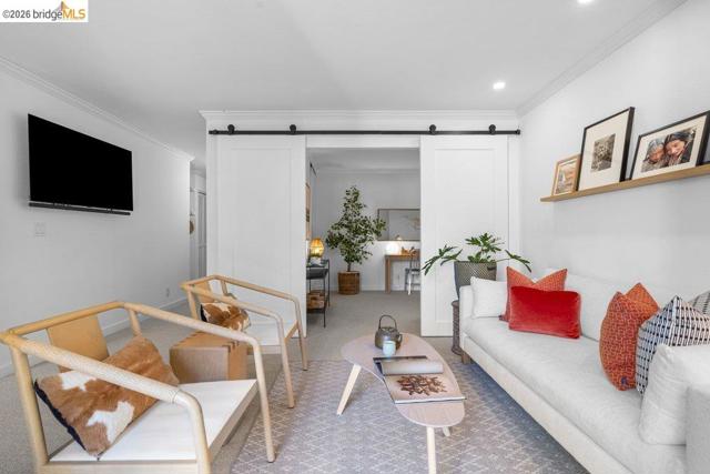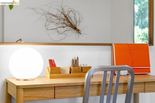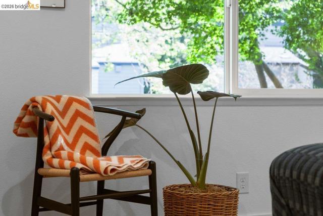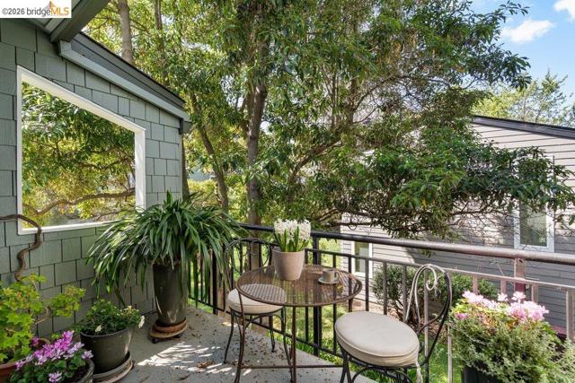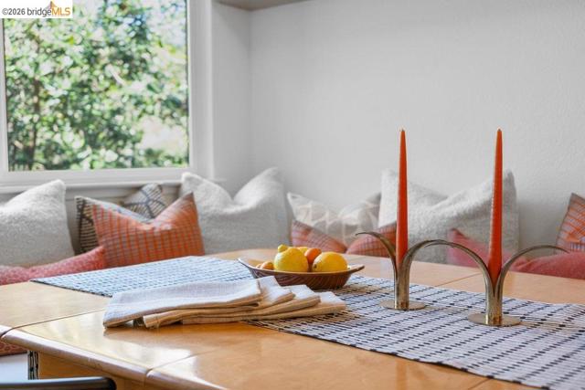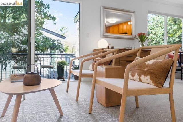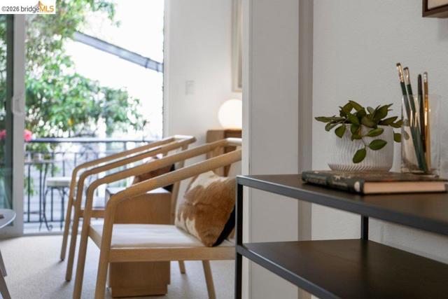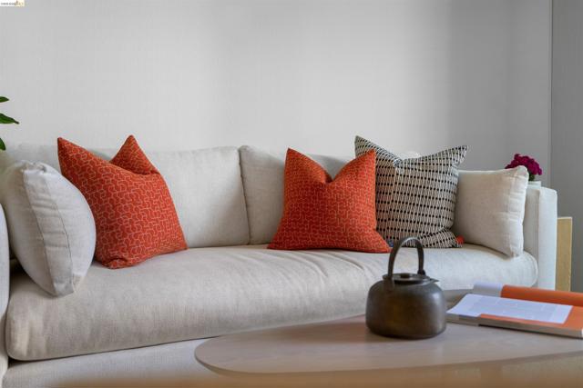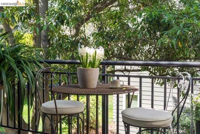 Serene, refined, and nestled in a leafy, greenbelt setting, this glowing upper corner condo is the gold standard for tranquil living. The airy interior sparkles with large windows and green outlooks wherever you turn, including a private deck dappled with natural light. Birdsong might be the only sound you hear throughout the day in your personal cocoon. Thoughtful, customized updates include a luxe laundry/storage area, built-in dining seating, recessed lighting, new wool carpeting, and pull-out flat screen TVs, making this one of the premium units in this coveted, tree-lined complex. Smart floor plan features a large primary bedroom, open kitchen-dining space with custom built-in storage benches, a living room draped in afternoon sunlight with level-out access to the intimate deck, and a second bedroom that doubles nicely as a home office. Beautiful, well-tended grounds. Situated within arm's reach of city amenities, transportation, commuter buses, large employers, bakeries, cafes and pubs, this core location represents convenience plus nature, privacy plus community, in a polished elegant space that spells "home”. Don't miss the direct pathway to Emeryville Community Center with gym, pickleball courts and swimming pool, and the HOA clubhouse available for parties and events!