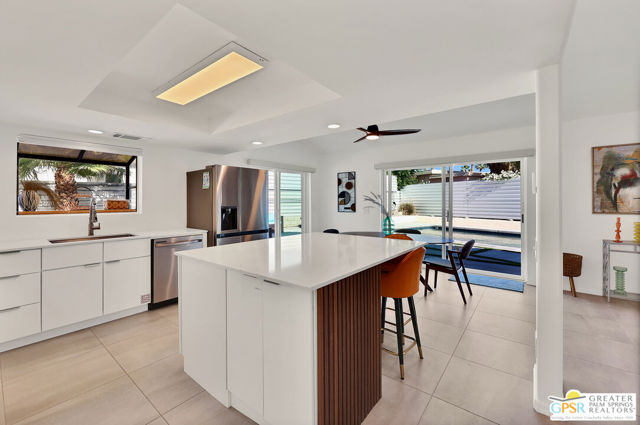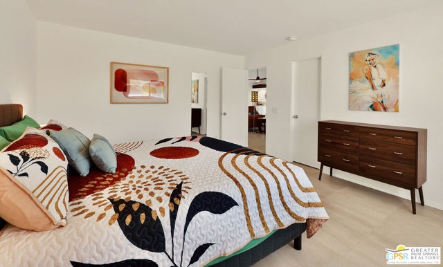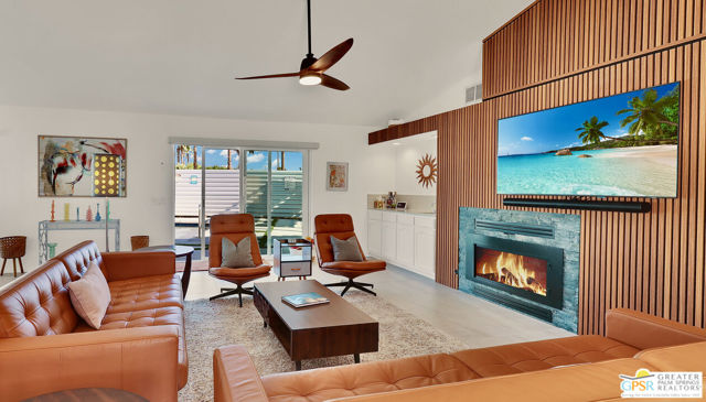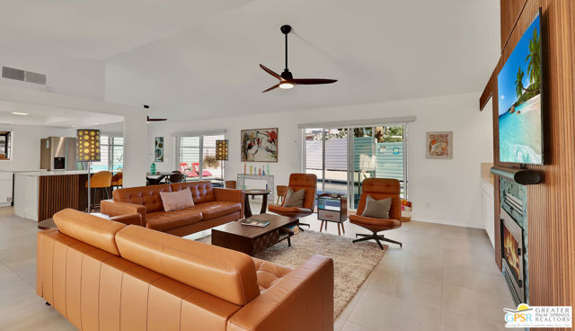 Live the Palm Springs lifestyle in this fully remodeled home with a fresh Mid-Century Modern aesthetic on fee simple land! This beautifully remodeled 2-bedroom, 2-bath home delivers style, flexibility, and effortless indoor-outdoor desert living. Set on a spacious corner lot with stunning mountain views all around, the home is filled with natural light, soaring ceilings, and an open-concept layout designed for both everyday comfort and entertaining. The thoughtfully designed interior features a sleek kitchen with a large island and upgraded appliances, while the private primary suite offers a walk-in closet and a stylish ensuite bath with modern finishes. A split-bedroom floor plan provides ideal separation for guests or a home office. Outside, enjoy a fully rebuilt pool and spa (2024) surrounded by peaceful, low-maintenance landscaping. The oversized lot offers RV parking and exciting potential for an ADU or expansion, making this an exceptional opportunity for both personal use and future investment. Offered fully furnished and previously operating as a successful Airbnb, this home is perfect as a primary residence, stylish second home, or condo alternative without HOA restrictions. Located in Racquet Club West just minutes from downtown Palm Springs, Palm Springs International Airport, and the iconic Palm Springs Aerial Tramway.