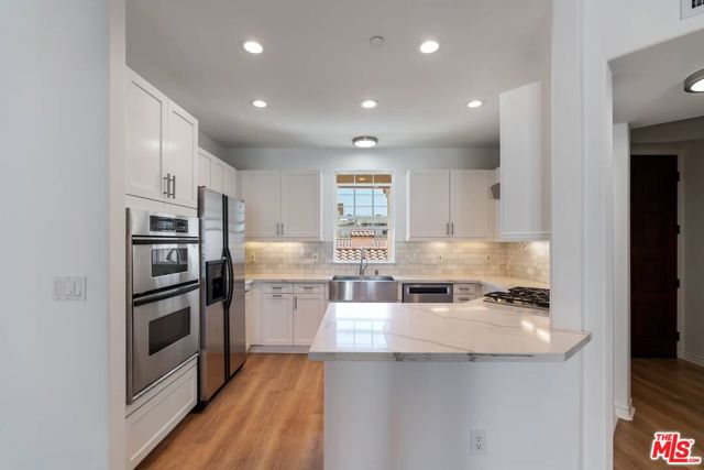 Welcome to Villa d'Este, one of Playa Vista's most sought-after Mediterranean-style communities, known for its charming courtyards, lush landscaping, and quiet, boutique feel. This rare fourth-floor residence offers an ideal combination of abundant natural light, privacy, and elevated living within the community. This light-filled home features a spacious and functional layout with high ceilings and multiple outdoor exposures that create an airy, open feel throughout. The beautifully refreshed interior includes an updated kitchen with stainless steel appliances, custom cabinetry, and a farmhouse sink. The kitchen flows seamlessly into the main living and dining areas, creating a clean, modern space that still feels warm and inviting. Large French doors lead to a private balcony overlooking the interior courtyard, enhancing the indoor-outdoor connection while showcasing the surrounding architectural details. The primary suite is a comfortable retreat with a walk-in closet and a well-appointed en-suite bath featuring dual vanity sinks, a soaking tub, and a separate shower. The second bedroom offers flexibility for guests, a home office, or additional living space. Additional features include in-unit laundry, a unique office nook, side-by-side parking, and extra storage. Villa d'Este residents enjoy a tranquil courtyard setting with distinctive architectural details, elegant arched walkways, and beautifully maintained common areas. Residents also have access to Playa Vista's full suite of amenities, including The Resort and CenterPointe Club, offering pools, fitness centers, parks, and walking paths. Ideally located near Crescent Park, and just moments from Runway Playa Vista, featuring Whole Foods, Cinemark movie theater, shops, dining, and entertainment. Also conveniently close to Playa Vista Elementary and other neighborhood amenities, offering a highly walkable and connected Westside lifestyle. HOA covers high-speed fiber internet, cable TV, water, trash, home security monitoring, and access to the pools and fitness centers at both The Resort and CenterPointe Club.