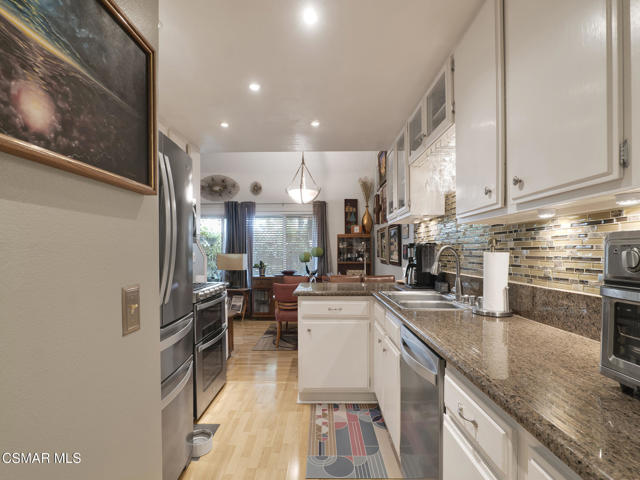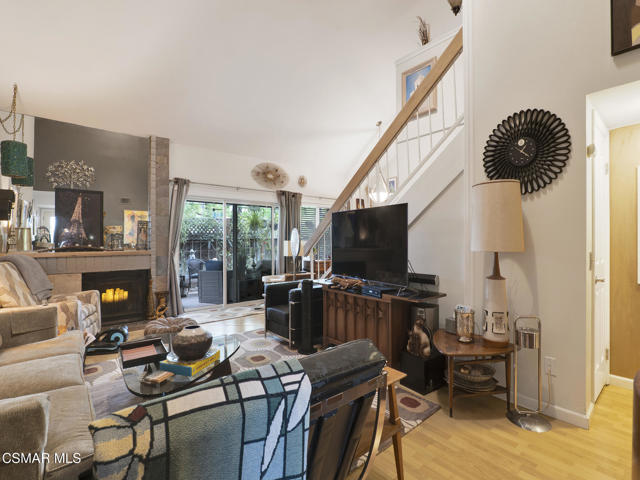Rare true townhome-style home in Apple Park, a small gated community in Newhall, thoughtfully maintained by the same owner for over 20 years. This turnkey 2-bedroom plus loft floorplan offers a rare combination of privacy, openness, and flexibility within the community. Soaring vaulted ceilings create an airy feel in the living and dining areas, while a cozy fireplace adds warmth and character to the main living space. The layout also includes a downstairs bedroom with direct access to a 3/4 bath, ideal for guests, extended family, or a home office.Upstairs, the primary suite features a walk-in closet and a spacious bath with separate tub and shower. Just off the primary suite, the loft provides valuable additional space for a home office, reading area, workout space, or second living area.One of the standout features of the home is the private outdoor space. In addition to the gated front patio, there is a larger private rear patio that is nicely hardscaped and covered by a permitted Alumawood patio cover, creating a peaceful setting for outdoor dining, entertaining, or simply unwinding.The home has been extensively improved with dual-pane windows, a dual-pane sliding glass door, upgraded front entry door, newer Rheem HVAC system, newer water heater, updated PEX plumbing, whole house fan, upgraded interior doors, scraped ceilings, front patio pavers, granite countertops, and newer stainless steel appliances including a gas range and double ovens.Residents enjoy the benefits of a small gated community with pool and spa amenities, all conveniently located near shopping, dining, and easy access to both the 5 and 14 freeways.