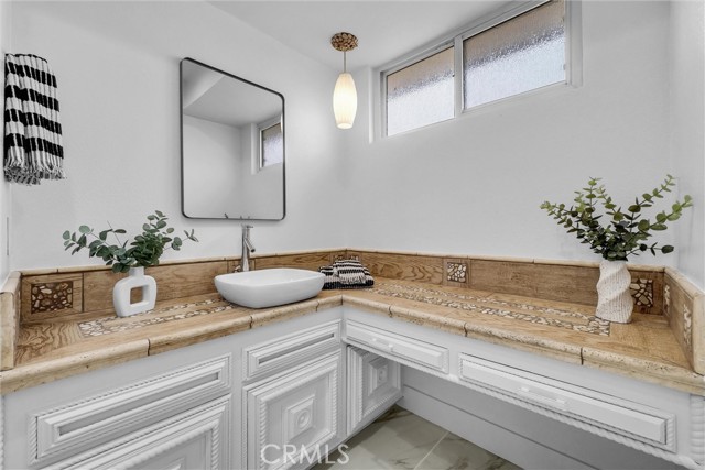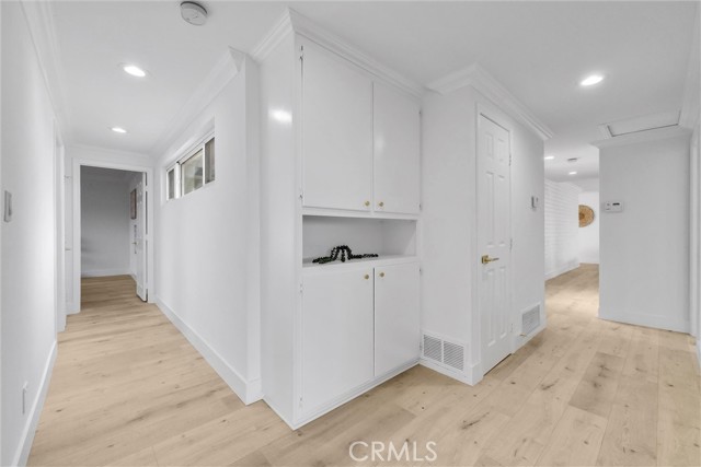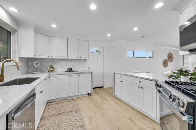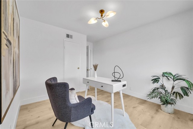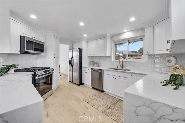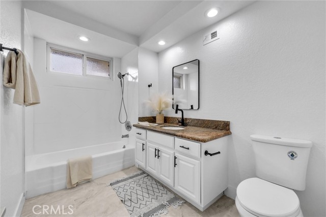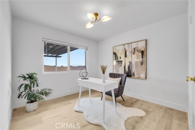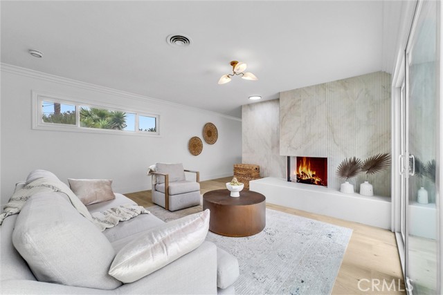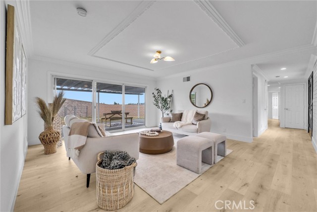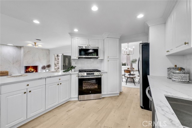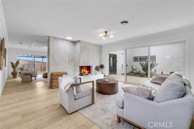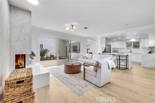 Interior features include an updated kitchen with quartz countertops, modern cabinetry, and newer appliances, seamlessly connecting to the main living areas. Additional upgrades include laminate flooring, recessed lighting, dual-pane windows, and a well-maintained HVAC system. Paid solar enhances energy efficiency.