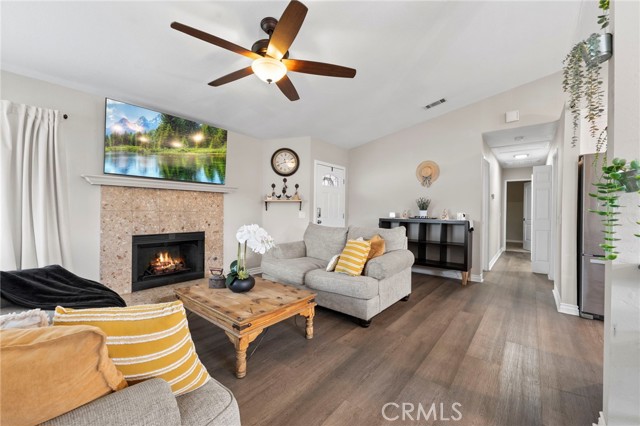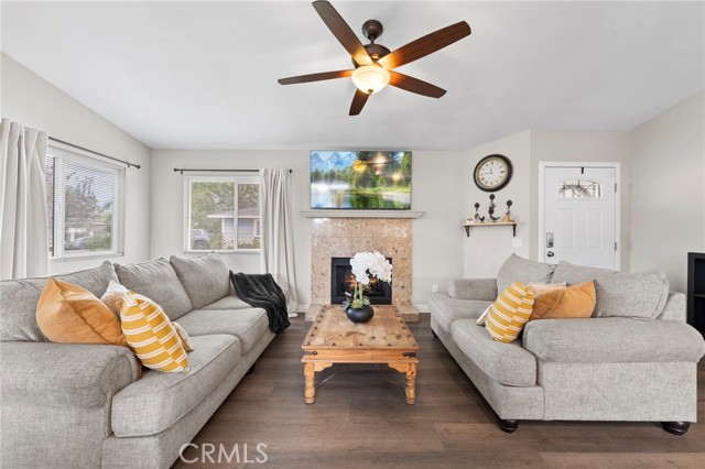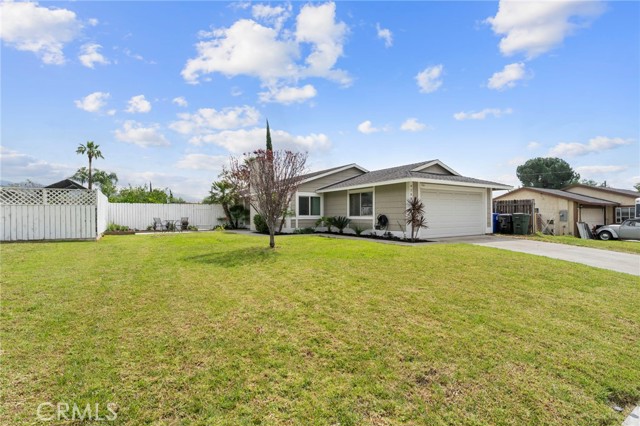 Wow! Let's start with the long driveway, great curb appeal as you walk pass a cute patio that leads you to the front door. As you enter you are greeted by lovely open floor plan. On the right is the living room featuring a cozy fireplace and windows that make it nice and bright, the kitchen has lovely white cabinets and dark counter tops, spacious inland with breakfast area, dining area can hold a large dining table with seating for at least 8. Hallway leads to 3 bedrooms 2 baths, laundry area is in the hallway. Central air and Heat. Back yard is an oasis, fantastic for you weekend bar-b-q's with so many fruit trees you may lose count, there is a tangerine tree, peach tree, peach donut tree, misperos, sweet lima, pomegranate, cactus, dragon fruit and a seedless lemon tree, yummmm. You also have a choice of putting in a pool or make that extra area an RV or boat parking. Show and sell!