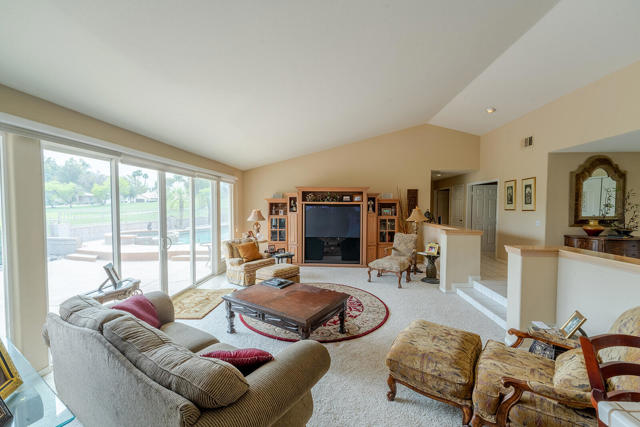 Spectacular Furnished Home. This beautiful four(4) bedroom, 3(three) en-suites is not only a wonderful floor of plan of 3,128 square feet it has a comfortable TV lounge, dining room, wet bar huge great room, pool/spa, and views of the 15th tee box and hole as well as the 14th green and fairway - this is a golfers dream location. Southern Mountain views with the golf course - this is a stunning location. The home is offered fully furnished, less seller inventory. There is a 3-car garage, with one being a golf cart garage, featuring many storage cabinets. The landscaping around the home boasts majestic palm trees with manured lawn. Avondale Golf Club's low monthly HOA is $552.00, which includes a social membership that give all homeowners access to the Clubhouse and all the activities, fitness center, limited golf during the season and more golf access during the summer, tennis and pickleball. Avondale offers residents a wonderful lifestyle. HOA amenities encompass 24-hour gated security, a prestigious social membership to the championship golf course, a state-of-the-art fitness center, tennis courts, and pickleball. Just 15 minutes from the world-renowned shopping on El Paseo. Avondale is in the IID electrical zone - that mean much lower electric bills that SCE - as much as 40% lower. Close to the upscale stores and the wonderful dining experiences of the El Paseo street; Indian Wells Tennis Garden is just 10-15 minutes for the BNP Tournament every March. Moments from shopping, fine dining, the Acrisure Arena and 5-star resorts, This wonderful home offers you the perfect setting for comfort and the desert lifestyle that you deserve. A formal entry opens to a generous living room with unbelievable views of the golf course and southern mountains, gas fireplace, wet bar, and dual glass sliding doors that lead to a backyard overlooking the golf course and a beautiful pool/spa. The home has two (not one) Primary Bedrooms with en-suites in addition to two other bedrooms, one with its own en-suite. This is Avondale Golf Course where your low HOA monthly dues include a social membership to the newly designed and spectacular clubhouse and limited golf privileges, 24-hour guard and social activities that are tons of fun and so entertaining and interacting with one of the friendliest neighbors and members in the desert. This is living the desert lifestyle you deserve, and this home is truly a desert lifestyle home.