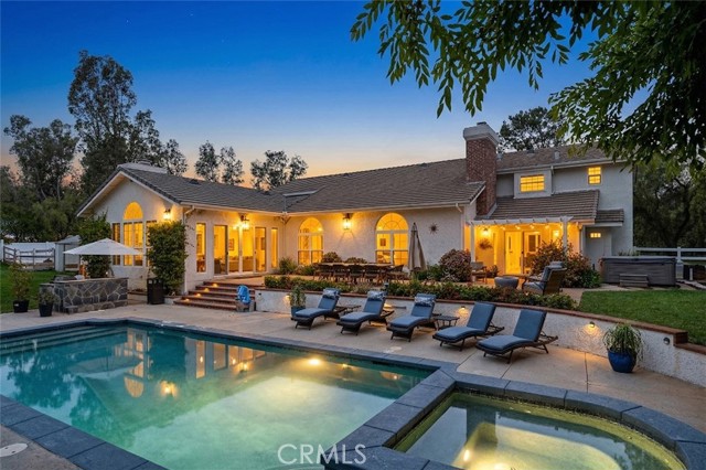 HORSE LOVERS’ LA CRESTA DREAM ESTATE! This spectacular, recently renovated home on 5 acres comes with all the bells & whistles! Tons of usable land, 150x75’ arena, 40’ round pen, direct trail access, barn with massive turnouts, pool & spa, giant mature trees, parklike grounds with grassy lawns and a very private location within the renown ranch community of La Cresta on the Santa Rosa Plateau. This estate even comes with a generous insurance discount for its proximity to the local fire station! The current owners spared no expense on the home renovations, including new flooring & paint throughout, remodeled kitchen, leveling of the previous sunken living room, designer lighting, custom front door and more! Most of the living space is single level with no steps, spacious rooms, guest wing (great for in-laws, kids…), lots of natural light, beamed ceilings, direct garage access, windows & doors to the beautiful backyard and pool. The Primary Suite and Jr. Primary Suite are both upstairs separated by a dramatic catwalk, providing an abundance of privacy. This remodeled estate in the heart of La Cresta with its usable land, fantastic horse facilities, paid-for solar and easy location is a real gem. And it is PRICED TO SELL! *****LA CRESTA & THE SANTA ROSA PLATEAU: 5-ac minimum parcels, minutes to schools, restaurants, hospitals, shopping, 15 Fwy & Temecula Wine Country. Enjoy this peaceful ranch community w/no commercial businesses, robust social activities, miles of private community trails & 1000s of acres of Ecological Reserve…All less than 1.5 hours from LA, SD, OC, Palm Springs & Big Bear. Discover the country, yet convenient, lifestyle of La Cresta, Tenaja & the Communities of the Santa Rosa Plateau!